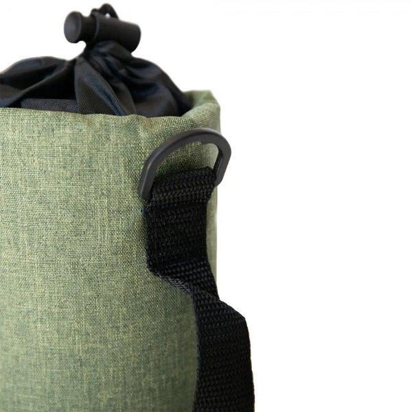 Доступ в чехол через вход-тубус с затяжкой на шнурке, что позволяет легко помещать или доставать термос из чехла.