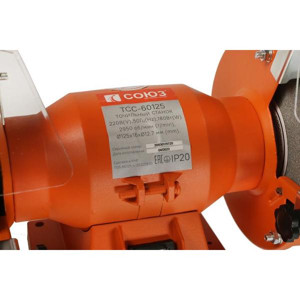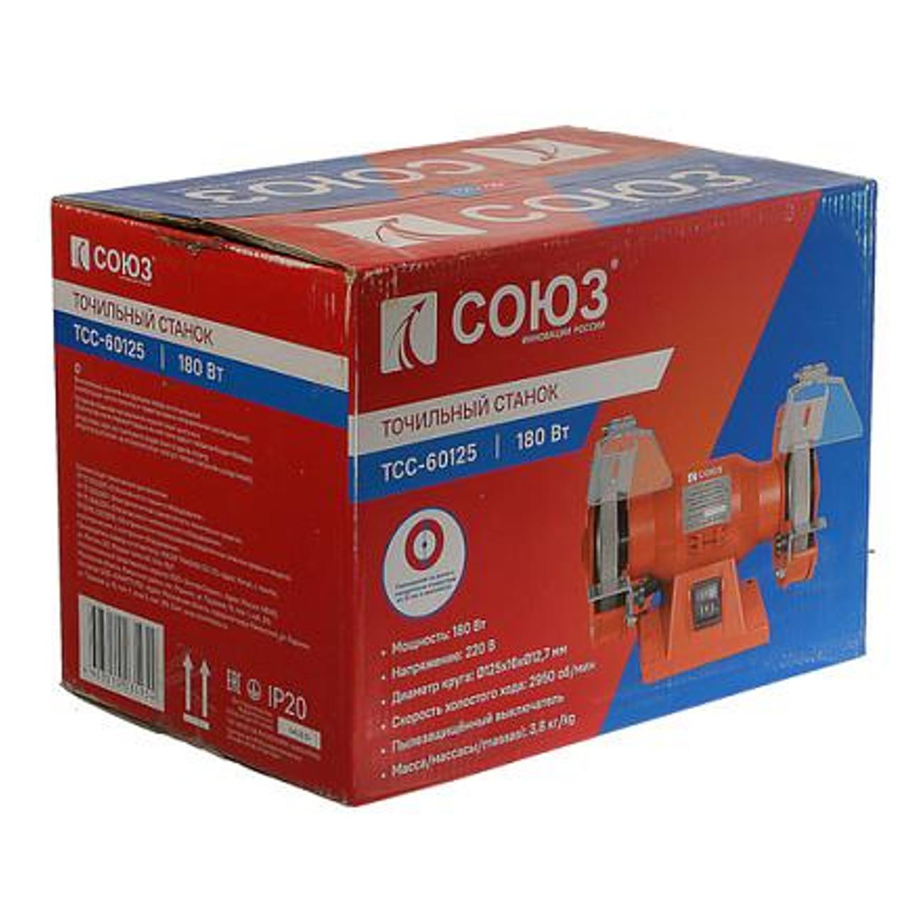Точильный станок «Союз» ТСС-60125 используется для заточки режущих инструментов. Максимальный показатель частоты вращения составляет 2950 об/мин. Устройство работает непрерывно на протяжении 20 мин. Инструмент оборудован мотором, который обеспечивает высокую производительность устройства. Максимальный уровень шума при работе не превышает 90 дБ. Диаметр посадочного отверстия равен 12,7 мм. Максимальный диаметр круга составляет 125 мм, ширина — 16 мм.