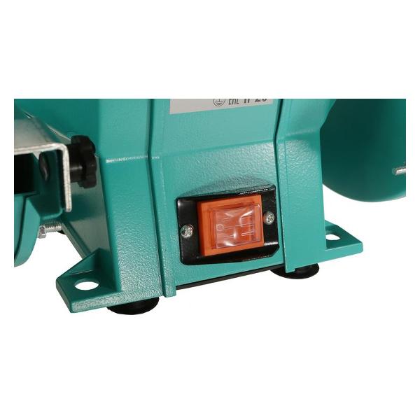 Точильный станок Sturm! BG6020L бирюзового цвета оснащен функцией охлаждения и подсветкой рабочей зоны. Модель применяется для затачивания режущих инструментов, работает от сети. Длина шнура составляет 1,5 м. Мощность прибора — 0,4 кВт. Напряжение — 220 В. Габариты — 28х26х37 см. Вес изделия — 10 кг. Уровень шума во время работы не превышает 95 дБ. Число оборотов в минуту достигает 2950. Диаметр посадочного отверстия — 1,6 см. Металлический корпус оснащен двумя искрогасителями и рабочими упорами. Ширина большого круга — 2 см.