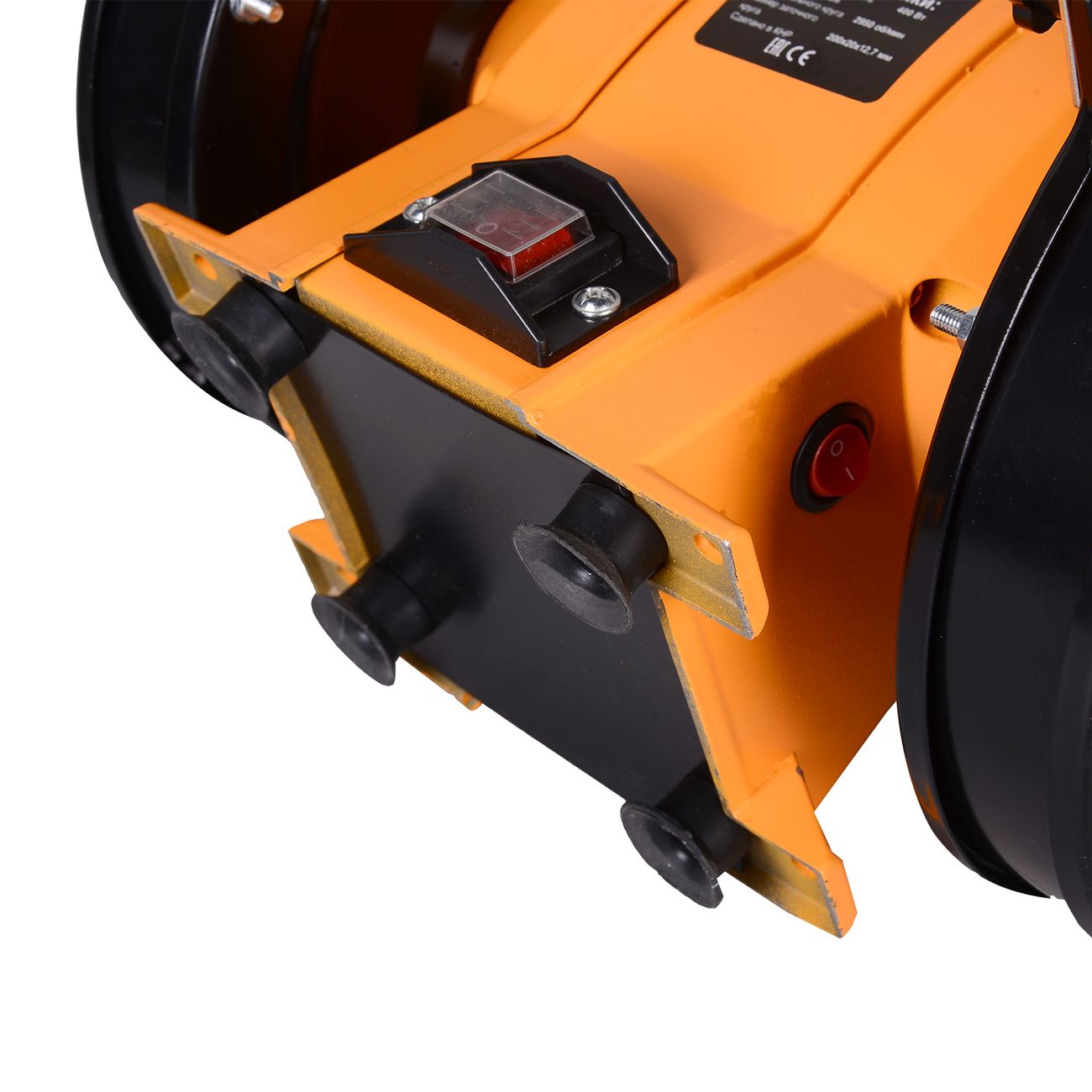 Точильные диски прикрыты защитными кожухами с искрогасителем, а для панели управления есть пара пластиковых экранов, предотвращающих случайное нажатие кнопки. В комплектацию входят два шлифовальных круга, которые при частоте вращения 2950 об/мин позволяют быстро заточить разные виды инструментов.
