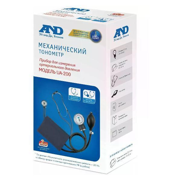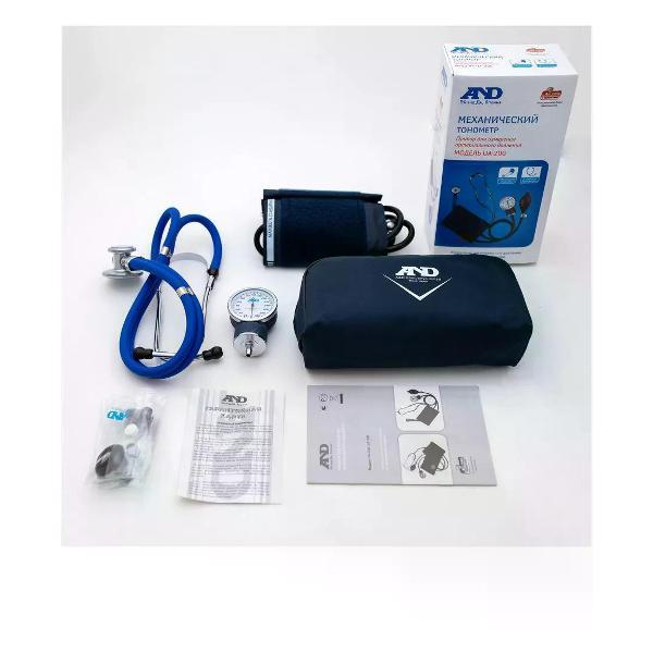 Тонометр AND UA-200 SL ручного типа используется для определения давления с погрешностью до 3 мм рт. ст. Максимальный показатель составляет 299 мм рт. ст. Для подачи воздуха в систему применяется резиновая груша. Считывание параметров осуществляется при помощи стетоскопа и аналогового манометра. Эксплуатация допускается при температуре от 10°C до 40°C.