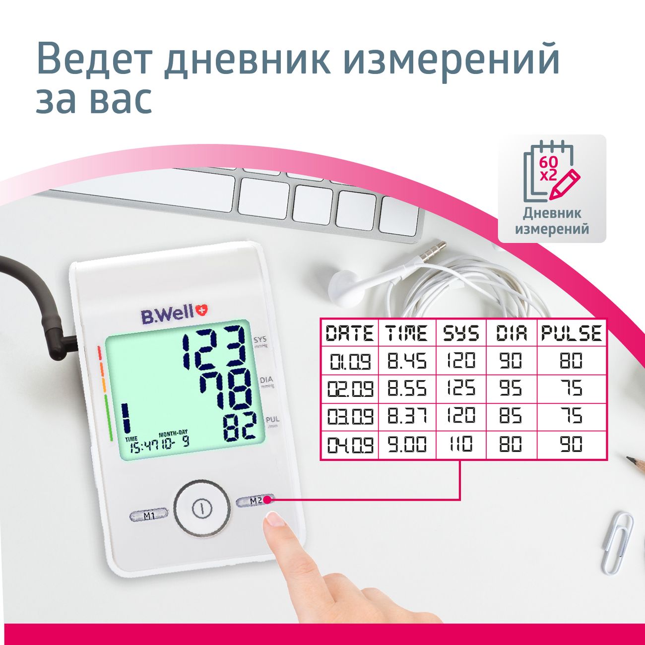 Замечательный тонометр, показывает очень чётко давление, причём оба показания. Стоимость вполне приличная, и функционал отличный. По сравнению с OMRON совсем по-другому накачивает и спускает давление в манжете: тише (не громко), быстрее, несколькими этапами, короче .. нежнее, что ли. Много дополнительной сигнализации на экране, это плюс и минус. Часы на экране и индикатор первого или второго пользователя не отключается совсем а это значит что батарейки используются при хранении прибора. После завершения измерения весь экран прибора светится зеленый-желтым-красным светом, в зависимости от замеренного давления.