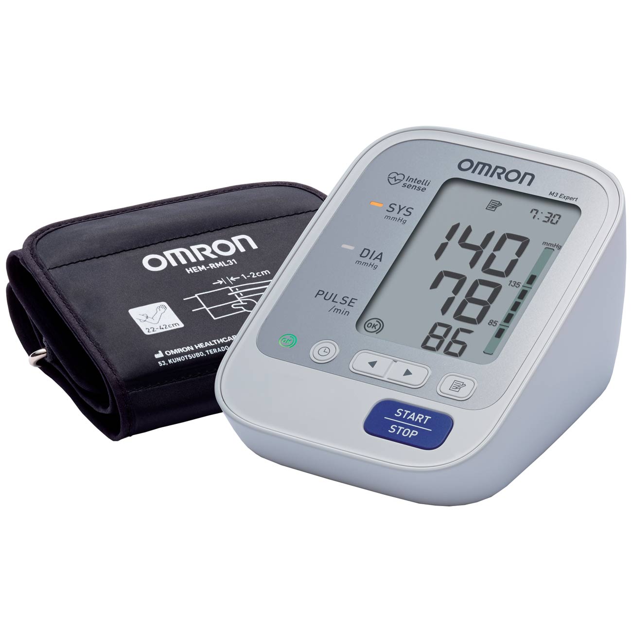 Автоматический тонометр Omron M3 Expert – компактное и простое в использовании устройство, позволяющее в домашних условиях узнать уровень артериального давления и частоту пульса. Оно оборудовано манжетой, которая крепится на плече и самостоятельно подстраивается под размер вашей руки.