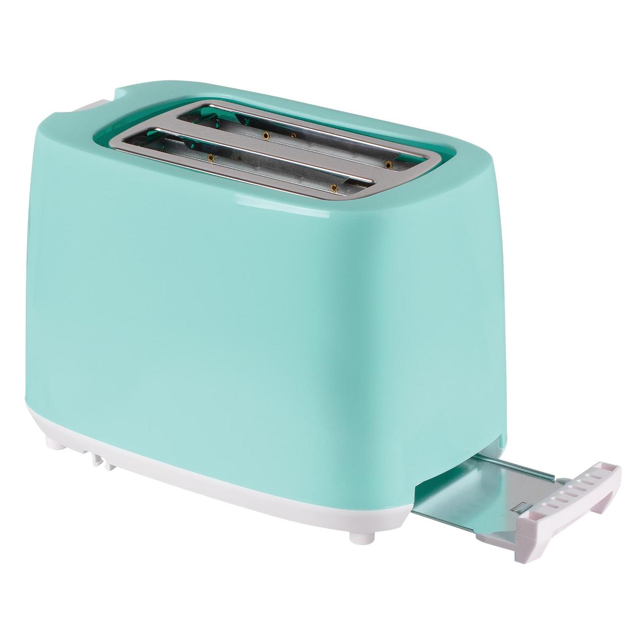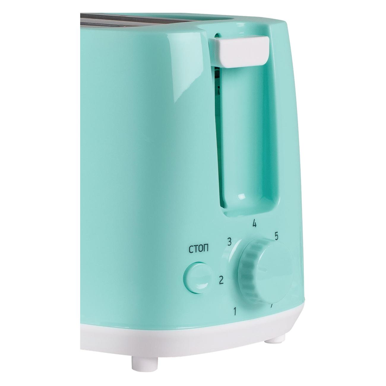 Тостер BBK TR82 расцветки «снежная мята» мощностью 700 Вт функционирует в семи режимах. Для выбора нужной степени поджаривания тоста на корпусе устройства предусмотрена механическая панель управления. По окончании приготовления хлеб поднимается автоматически при помощи пружинного механизма. Модель оснащена стоп-кнопкой для прерывания процесса приготовления. Термоустойчивый корпус устройства включает в себя два отсека для тостов, съемный лоток для сбора крошек, ножки с прорезиненным покрытием и отсек для электросетевого кабеля. За безопасную эксплуатацию отвечает опция выключения во время перегревания.