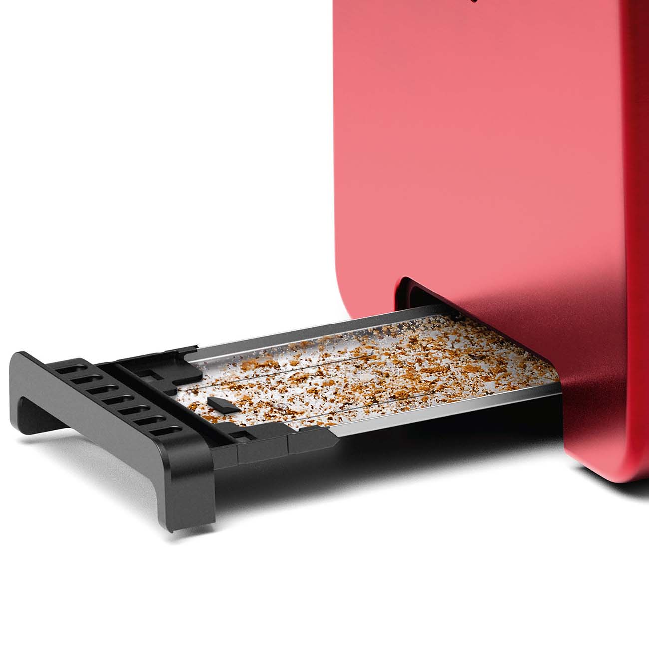 Внешнюю поверхность стального корпуса следует протирать салфеткой из мягкой ткани по мере загрязнения. Удобно, что крошки попадают прямиком в специальный поддон, который легко снимается и чистится.