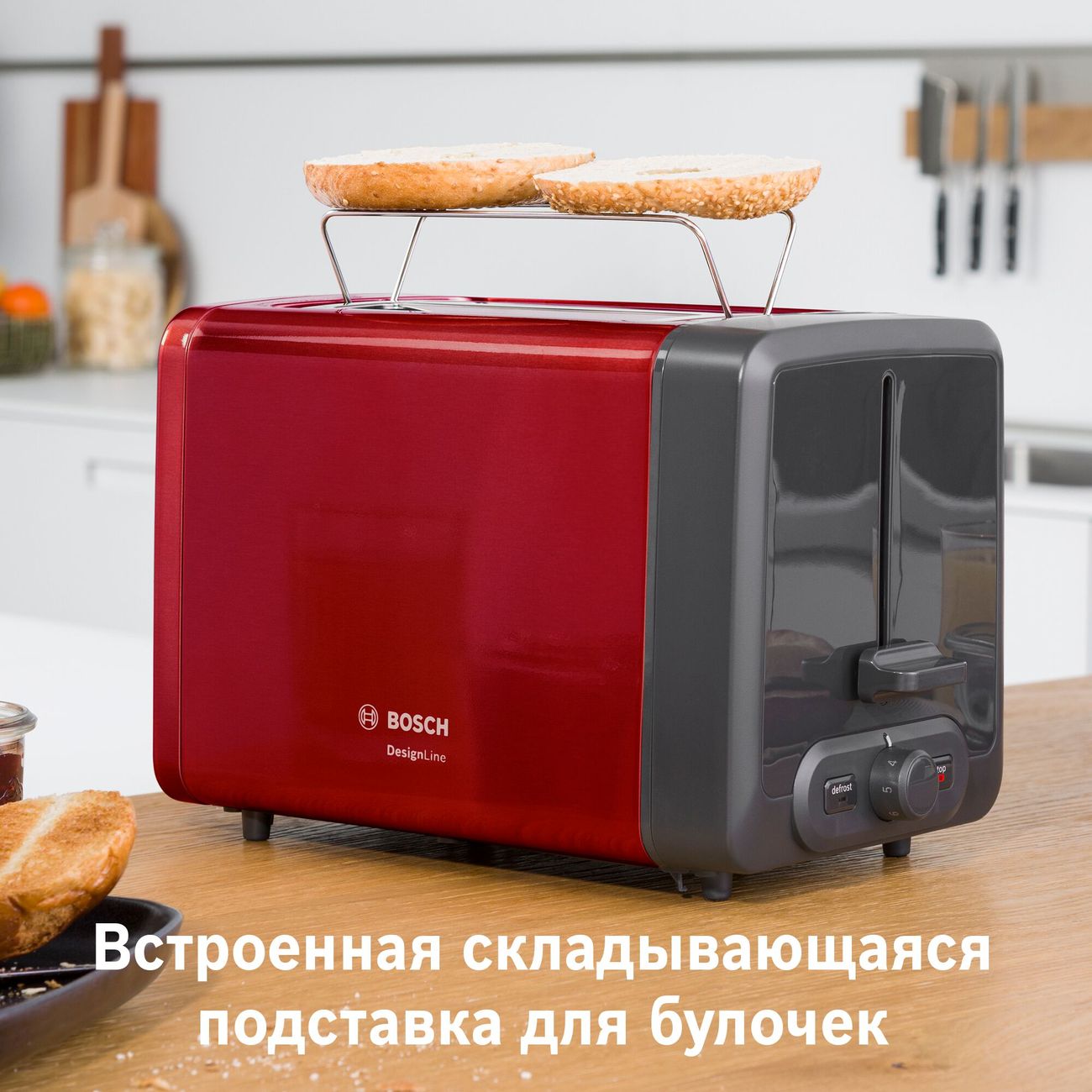 Тостер Bosch TAT4P424 – гарант вкусного и сытного завтрака каждый день. Благодаря автоматическому центрированию ломтики хлеба прожариваются максимально равномерно, а моторизированный подъёмник выдвигает их на безопасное расстояние, так что ожоги вам больше не страшны.