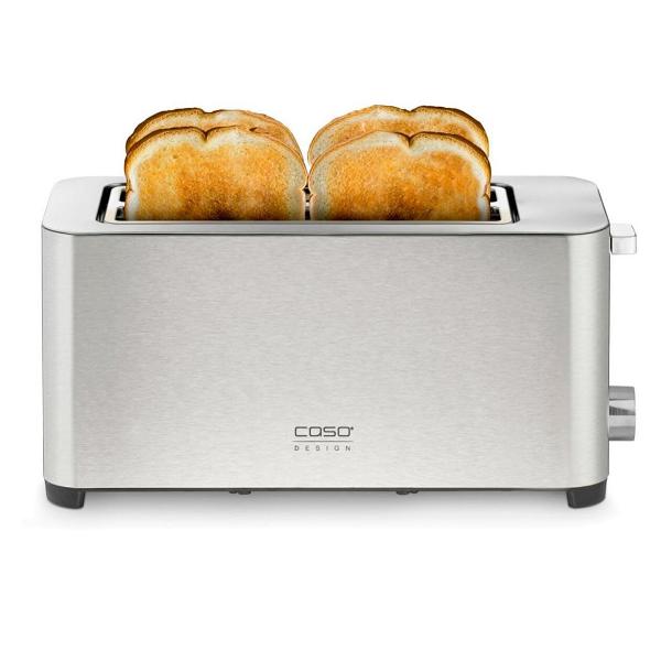 Тостер Caso Classico T4 отличается удлиненной корзиной для загрузки до четырех тостов. Корпус выполнен из высококачественной нержавеющей стали. На корпусе расположены кнопки со встроенной подсветкой, которые отвечают за включение режима подогрева или разморозки, и регулятор степени прожарки хлеба (предусмотрено пять ступеней).