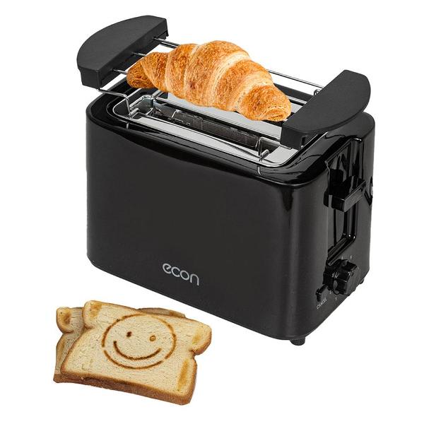 Тостер Econ ECO-250TS способен приготовить до двух ломтиков хлеба разной обжарки. С помощью решетки можно запечь гренки. Кнопка «Стоп» предусматривает преднамеренное отключение работы. Автоматическое центрирование позволяет равномерно обжаривать тосты со всех сторон. Предусмотрен рисунок в виде смайла.