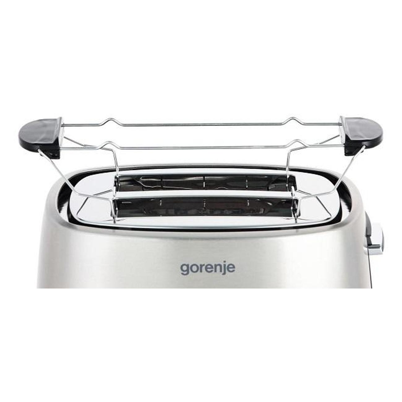 Тостер Gorenje T1000E оснащен встроенным термостатом, который поддерживает равномерную температуру нагрева внутри слотов. Корпус прибора комбинированный, изготовлен из пластика и металла. Он термоизолированный. Мощность тостера составляет 1000 Вт. У модели предусмотрено семь режимов нагрева. Также присутствует функции подогрева и разморозки кусочков хлеба. Включение и отключение осуществляется посредством кнопки.