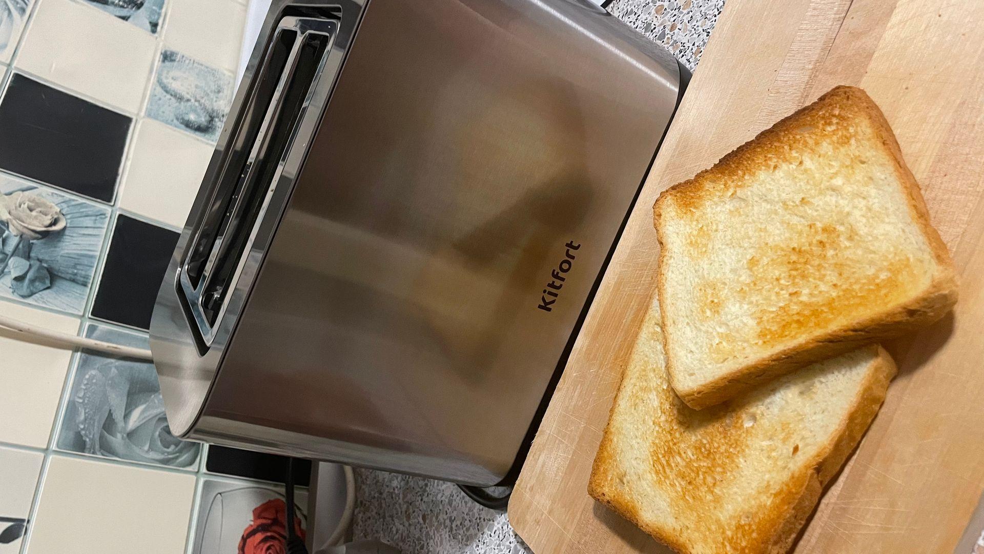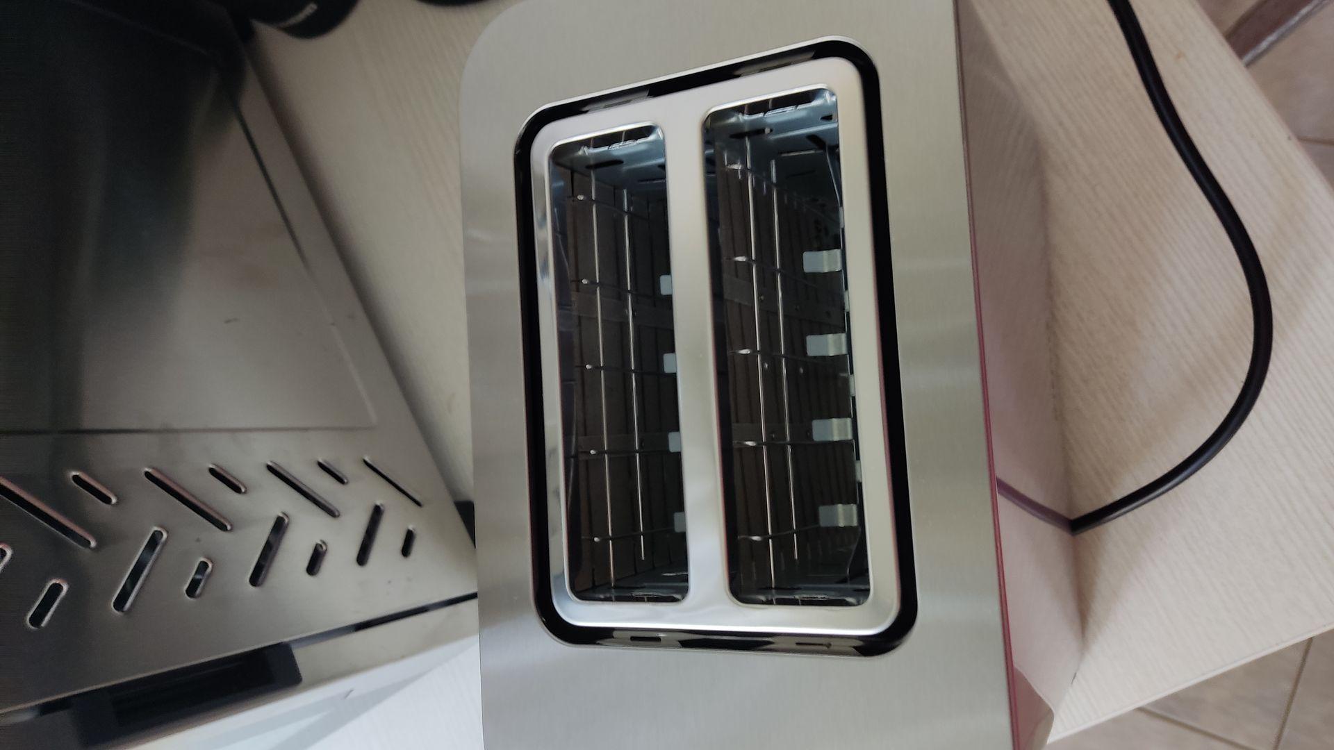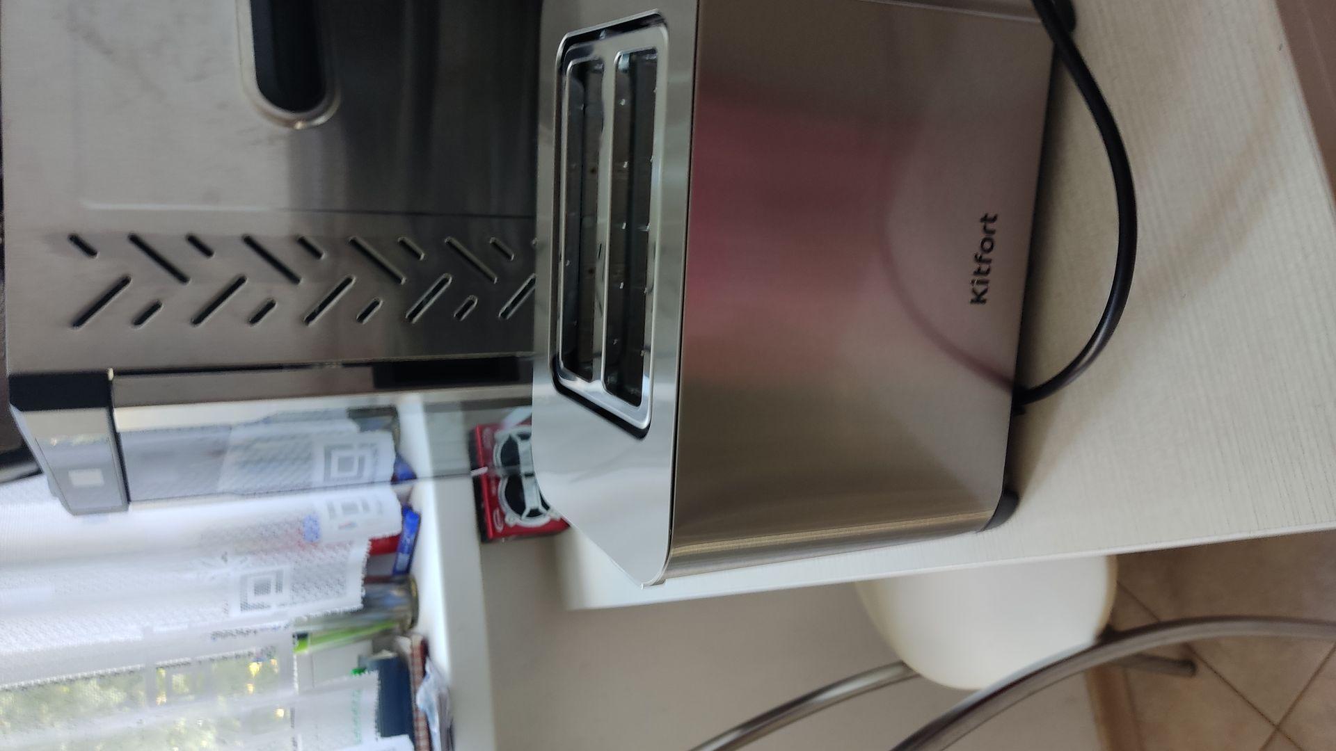 Отличный тостер. Хлеб жарит отлично, не поджигает его. Состояние товара и его работоспособность отличные. Большой отсек для хлеба, есть автоцентрирование хлеба в лотке, благодаря этому хлеб не горит!!! и легко вынимается!!!!, сборник крошек, удобный выход провода сбоку. Хлеб можно жарить любой, даже толсто нарезанный. Классный металлический корпус, четкий сенсорный экран, по столу не скользит. Когда распаковал оказался круче чем на фото. Качество сборки отличное, ничем не хуже тостеров дорогих брендов. Не первая покупка этой фирмы, многим вещам по 6 лет и все работают, думаю и этот тостер не будет исключением.