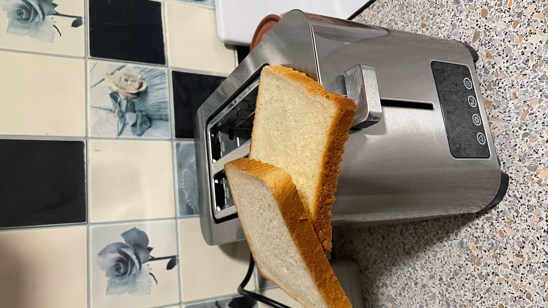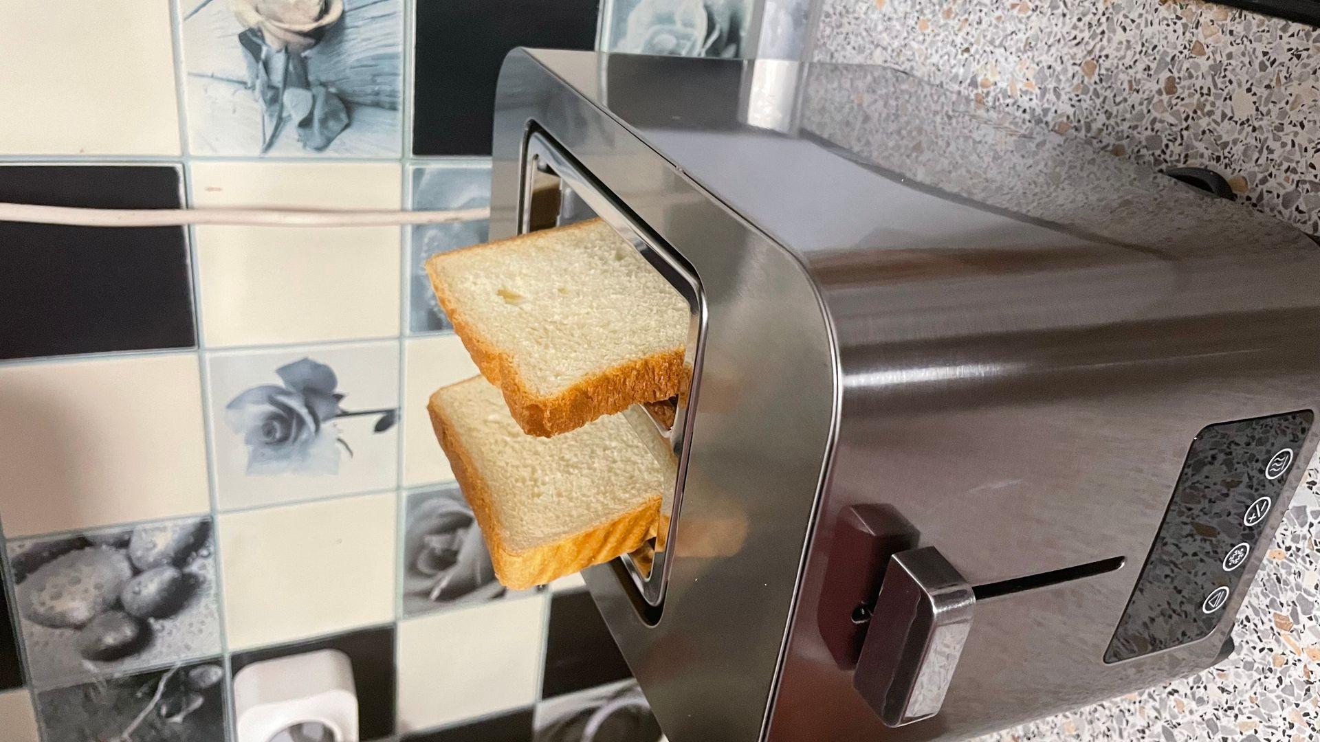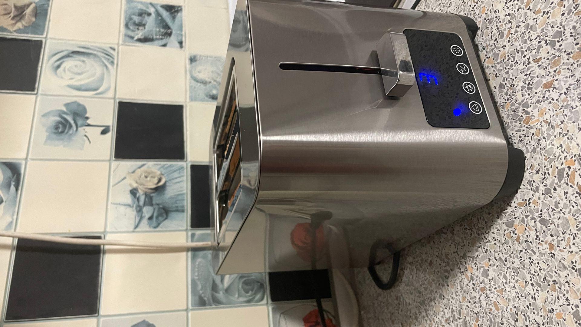 Отличный тостер. Хлеб жарит отлично, не поджигает его. Состояние товара и его работоспособность отличные. Большой отсек для хлеба, есть автоцентрирование хлеба в лотке, благодаря этому хлеб не горит!!! и легко вынимается!!!!, сборник крошек, удобный выход провода сбоку. Хлеб можно жарить любой, даже толсто нарезанный. Классный металлический корпус, четкий сенсорный экран, по столу не скользит. Когда распаковал оказался круче чем на фото. Качество сборки отличное, ничем не хуже тостеров дорогих брендов. Не первая покупка этой фирмы, многим вещам по 6 лет и все работают, думаю и этот тостер не будет исключением.