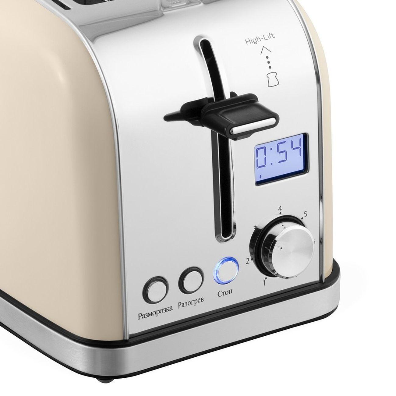 Обожаю этот тостер! У него красивый бежевый цвет и стильный дизайн. Тостер сделан из нержавеющей стали, поэтому уверена, что прослужит мне очень долго. Регулирование степени нужной прожарки хлеба простое и понятное. На экранчике отображается, сколько осталось времени до готовности, для меня это очень удобно. Тосты выскакивают не громко и не слишком резко. Мне очень нравится, что в тостере предусмотрена разморозка, поэтому туда можно класть замороженный хлеб. И даже из него он сделает вкусный, хрустящий тост!