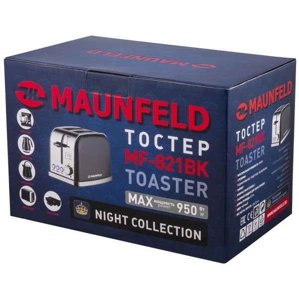 Maunfeld MF-821BK будет выглядеть как новый даже спустя годы: для этого время от времени протирайте его внешнюю поверхность слегка влажной тканевой салфеткой. Поддон для сбора крошек рекомендуется опорожнять не реже одного раза в неделю.
