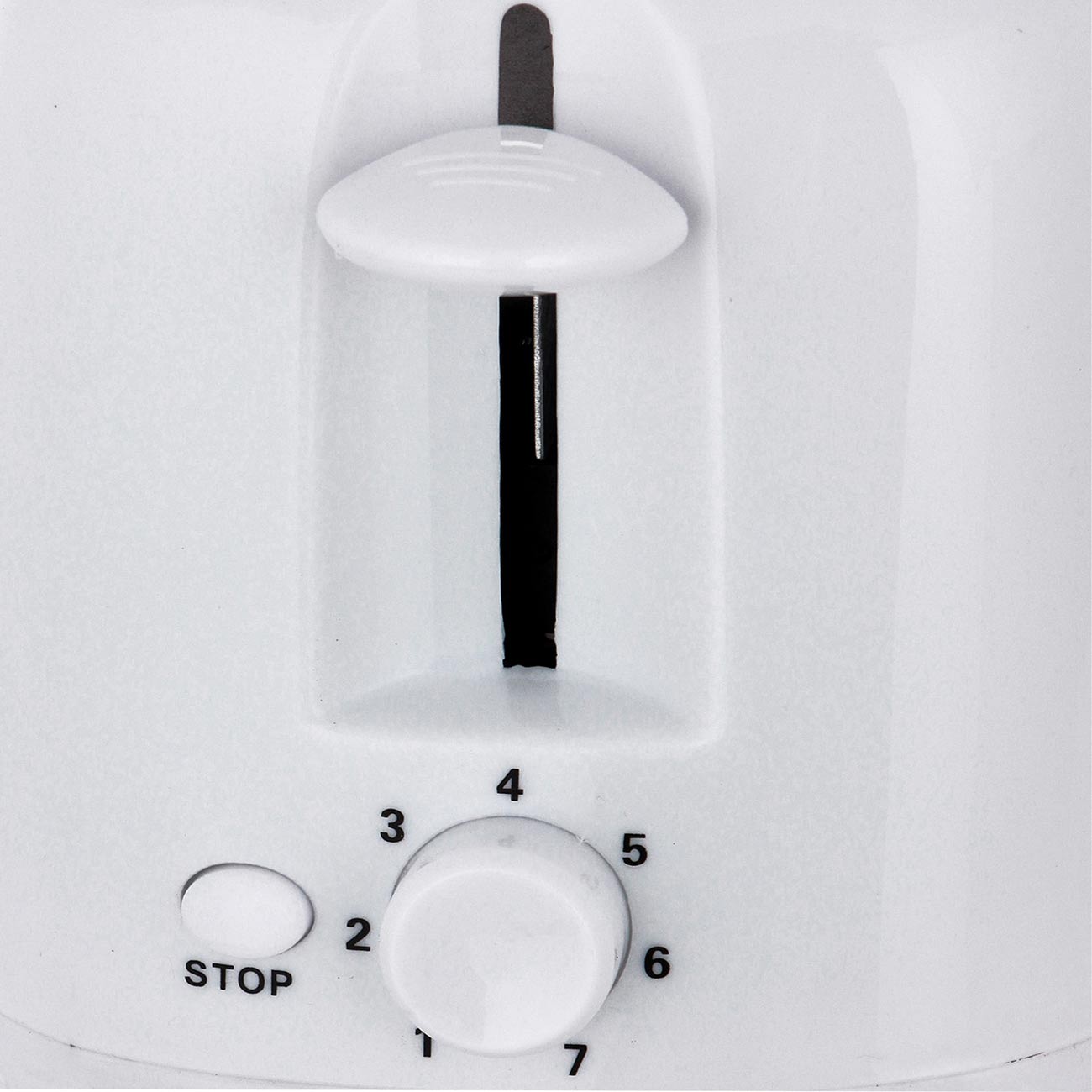 Прибор работает от сети 220 В. Степень прожаренности можно выбрать по своему вкусу из семи возможных. У тостера есть прорезиненные ножки, препятствующие скольжению, и съёмный поддон для крошек.