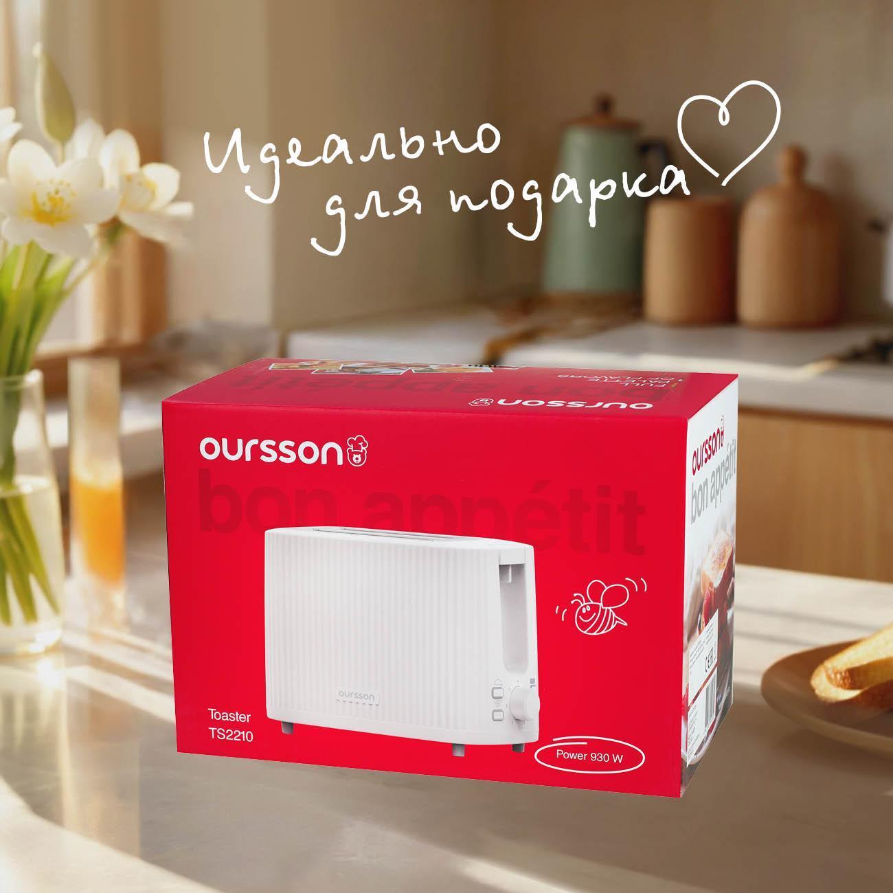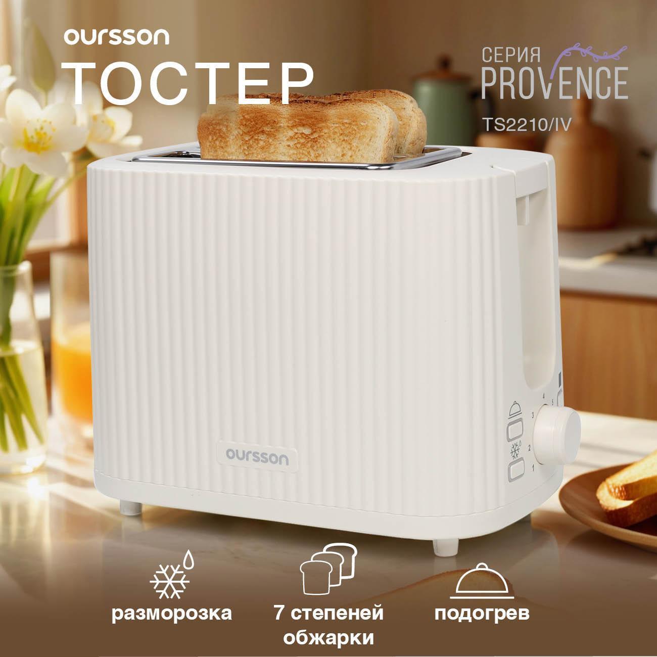 Тостер Oursson TS2210/IV подключается к сети 220-240 В кабелем длиной 0,75 м, который компактно хранится в специальном отделении на корпусе.