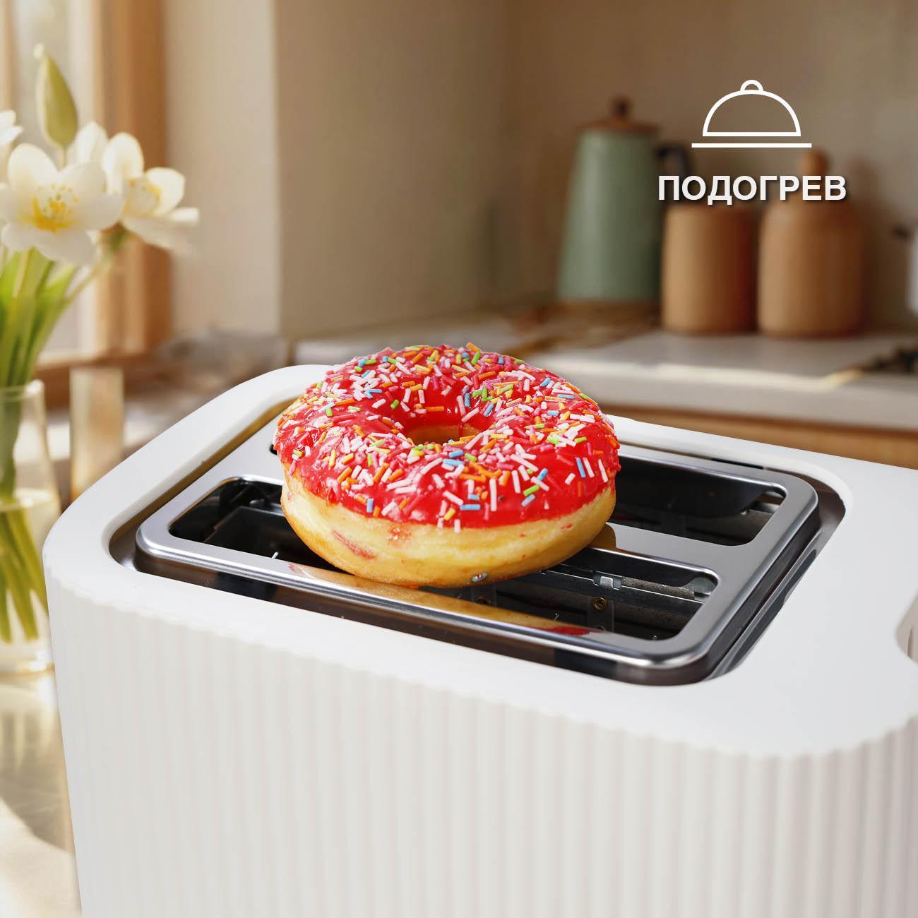 Функции разморозки и подогрева позволяют готовить тосты сразу из замороженного теста или освежить остывший хлеб.