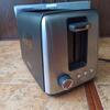Боковые регуляторы позволяют управлять работой тостера, устанавливая одну из семи степеней обжарки с помощью поворотной ручки, выбирая режимы подогрева и разморозки. Кнопка Cancel («Отмена») дает возможность экстренно прервать цикл обжаривания или отменить установленную программу.