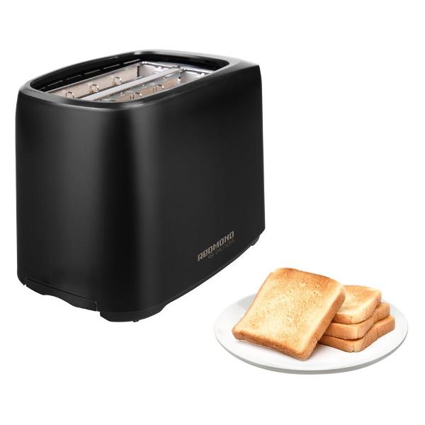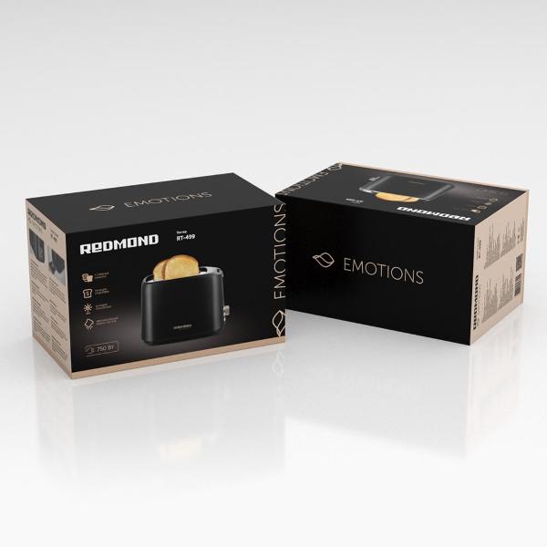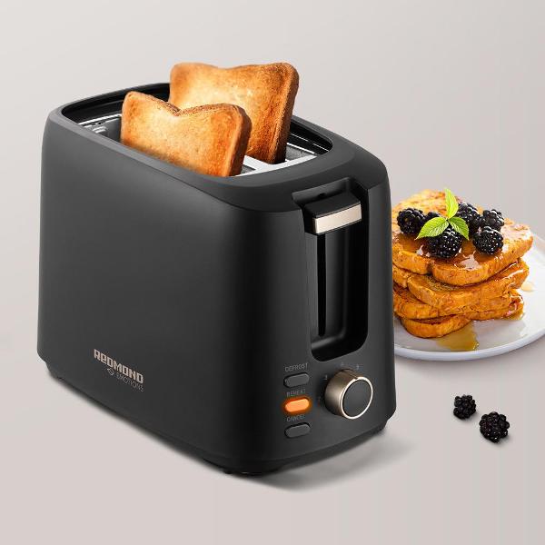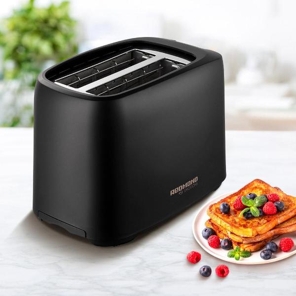 Тостер Redmond RT-499 обладает мощностью 750 Вт. Модель позволяет приготовить одновременно два тоста.