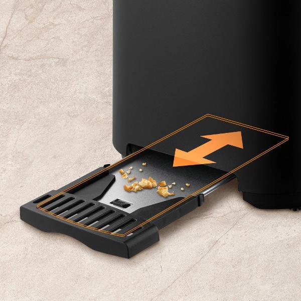 С помощью механического регулятора можно выбирать степень прожаривания тостов — от легкого подрумянивания до полного высушивания.