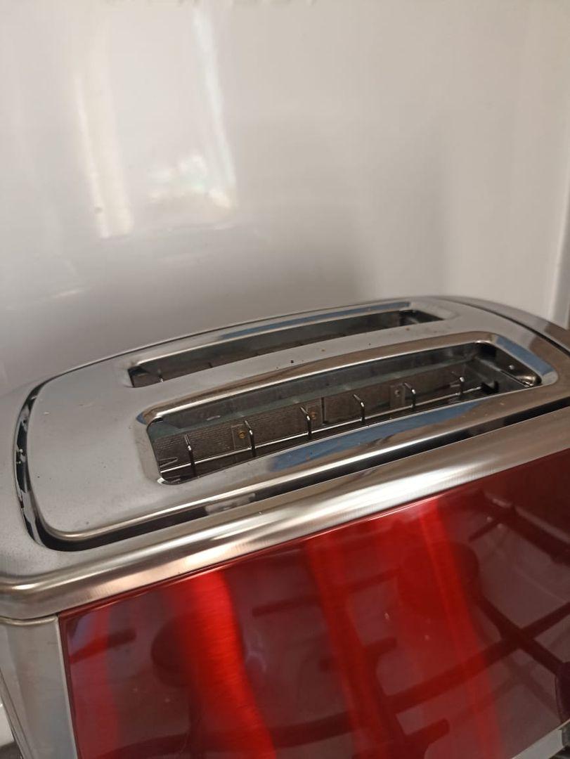 Маркий корпус, короткий шнур питания, может немного большеват для кухни в 5 квадратов. Со временем не равномерно поджаривает и нагревается верхняя часть. Бывает ложная готовность хлеба но, сколько тостеров не пробовал, периодически бывает у всех.
