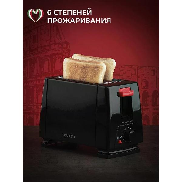 Тостер Scarlett SC-TM11021 весом 0,9 кг и компактным размером 14,5х22х10 см не занимает много места. Шесть режимов работы позволяют подобрать оптимальный вариант прожарки. Для отмены предусмотрена кнопка STOP. Модель с двумя отсеками для хлеба подключается к сети через шнур длиной 0,8 м. Корпус из металла и пластика легко отмывается от загрязнений. Отсек для провода обеспечивает комфортные и безопасные условия для хранения и транспортировки. Прибор оснащен съемным поддоном для крошек, что облегчает уход.