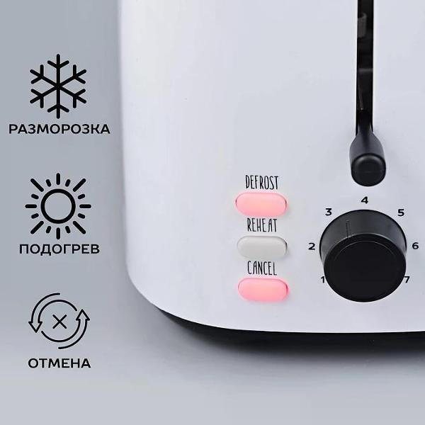 Делаю тосты ежедневно. Получается вкусно. Заправляю их обычно маслом. У тостера имеется функция подогрева. Если хлеб заморожен, то и функция разморозки есть. Мощность высокая. Просто пользоваться. Дизайн современный, стильный.