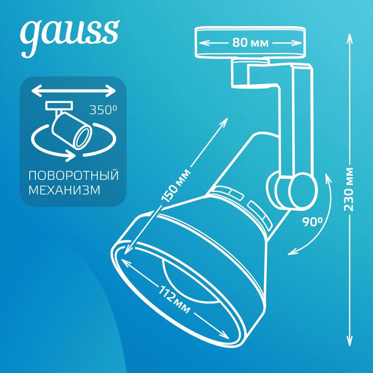 Трековый светильник Gauss TR013 предназначен для частного дома или общественных мест. LED-лампа обеспечивает яркий и равномерный свет. Тип патрона — E27. Цветовая температура — 6000К. С помощью специального крепления устройство фиксируется на потолок. Корпус изготовлен из стали, которая устойчива к образованию коррозии и не подвержена сколам и царапинам. Класс защиты — IP20.