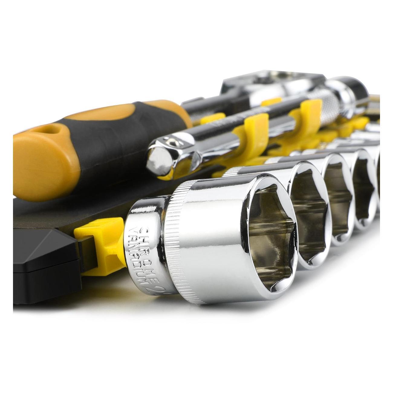 Нива — машина, которую чинишь постоянно. Раньше таскал с собой ворох рожковых ключей и вороток с головками вперемешку. Купил этот GOODKING, и жизнь наладилась. Всё необходимое для колёс и ходовки в одном кейсе. Вчера менял шаровые — головки на 17 и 19 отработали отлично, грани не слизали. Рукоятка трещотки — огонь: мягкая, но плотная, в ладони лежит идеально. Для тех, кто обслуживает машину сам, — идеальный вариант: и цена, и качество.