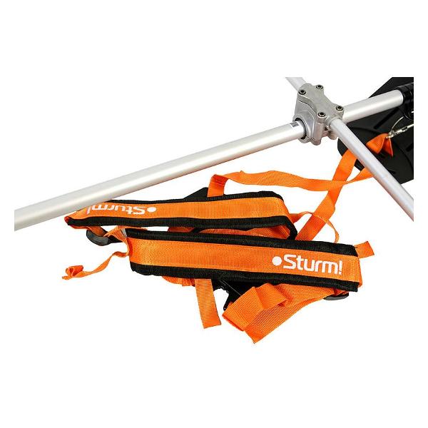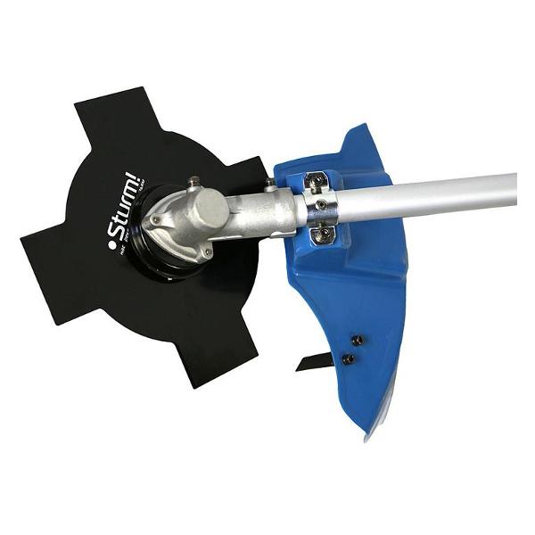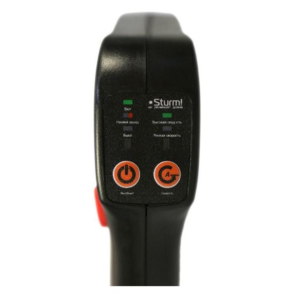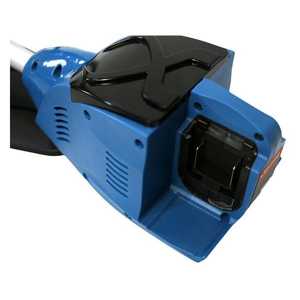 Аккумуляторный садовый триммер Sturm! BT36 черного цвета с синими элементами обладает массой 5,2 кг. Габариты устройства — 170х12х22 см. В комплекте поставляются катушка с леской, нож и плечевой ремень. Модель оборудована прямой штангой. Установлена ручка типа велосипедного руля. Установлен жесткий приводной вал. Дека выполнена из стали. Диаметр режущей лески — 2 мм. Напряжение батареи — до 18 В.