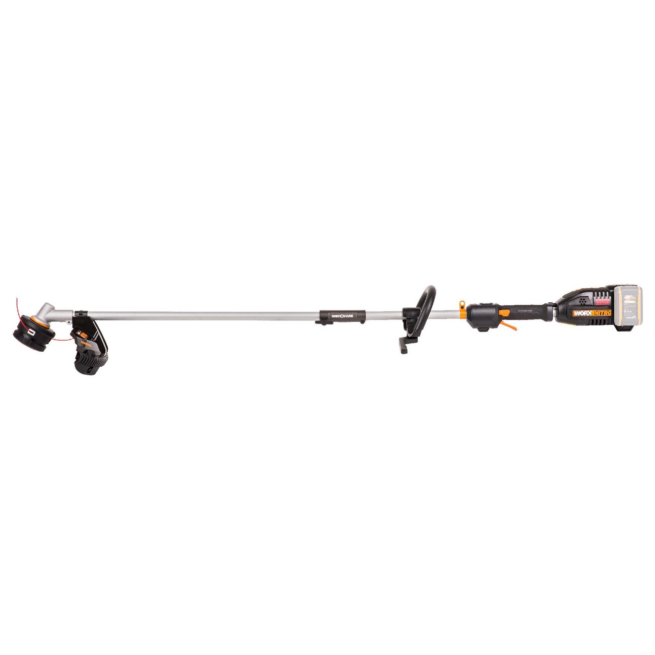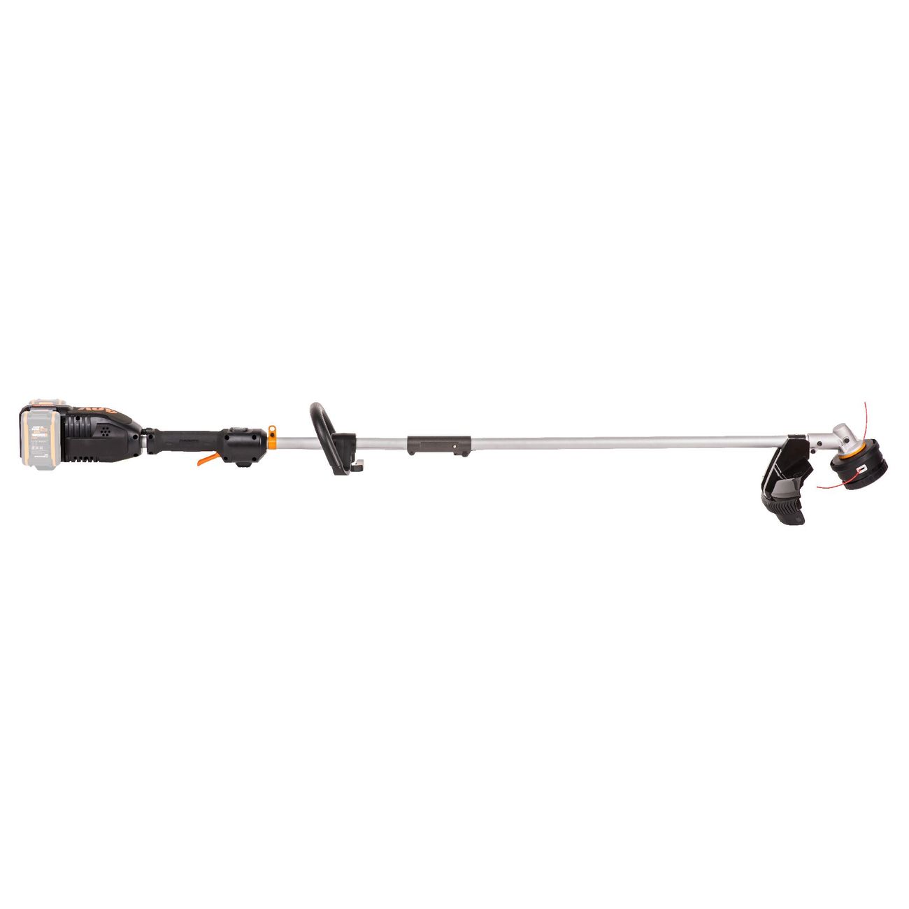Электрический триммер Worx работает от литий-ионного аккумулятора мощностью 20 В.Его габариты 85 х 13 х 18 см, а вес — 2,6 кг: за счет компактности возможно с меньшими усилиями обрабатывать труднодоступные участки.