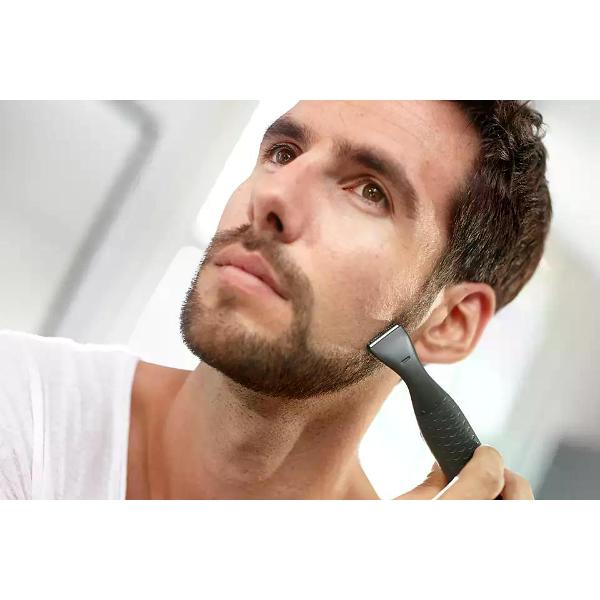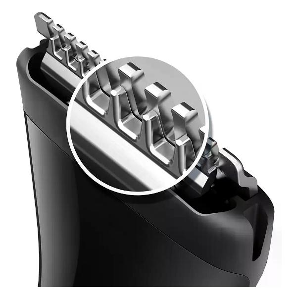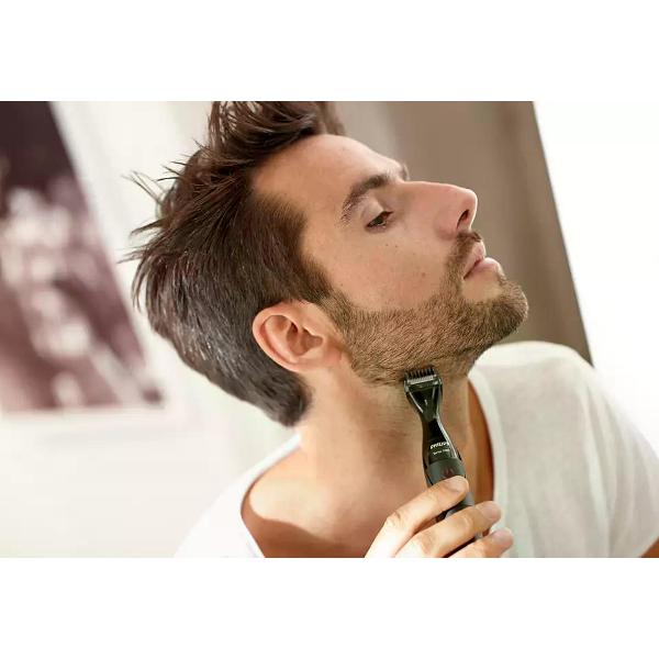 Триммер Philips MG1100/16 дает возможность подравнивать бороду, усы, бакенбарды с помощью пяти сменных насадок, которые входят в комплект. Длина стрижки может варьироваться от 1 до 5 мм. Доступно четыре установки длины. Ширина ножа составляет 21 мм. Острые лезвия выполнены из нержавеющей стали, которая не подвержена деформации и появлению коррозии. Режущий элемент не требуется смазывать и затачивать. При необходимости триммер и сменные насадки можно промывать под водой.