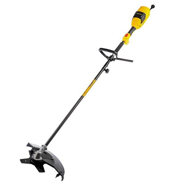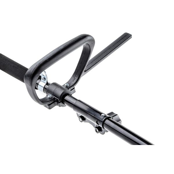 Мощный триммер с верхним расположением двигателя и прямой разъемной штангой, предназначен для работы как косильной головкой, так и режущим ножом.