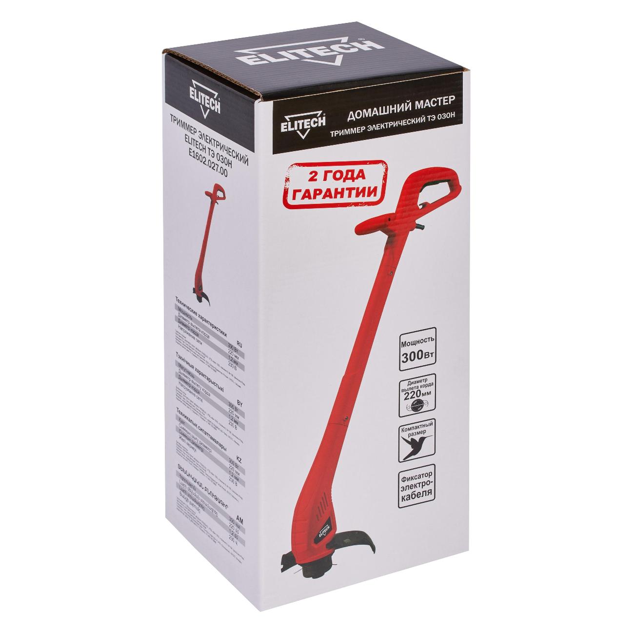 Электрический триммер Elitech ТЭ 030Н (E1602.027.00) предназначен для скашивания травы на территории загородных участков. Обработка производится с помощью лески толщиной 1,2 мм. Модель рассчитана для эксплуатации при температуре внешней среды от +5°С до +35°С. Уровень шума во время работы не превышает 90 дБ.