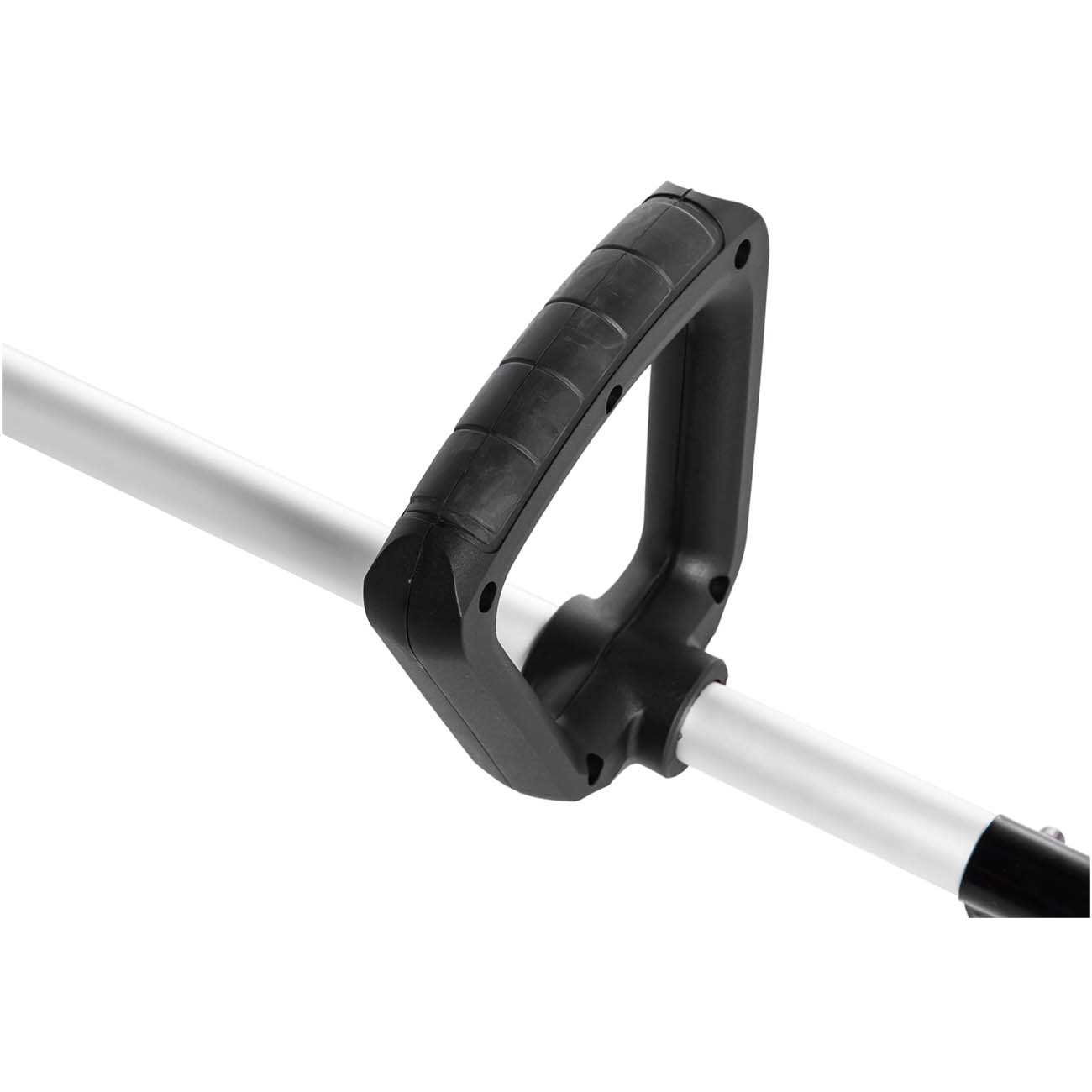 Внизу триммер оснащен защитным кожухом, он служит для защиты моих ног от травы и выбрасываемых камней и земли. Агрегат собран из добротных пластика и железа, да и к самой сборке претензий быть не может, все подогнано отлично. Мощность полторы тысячи Ватт, работает с ножом и леской, в комплектации имеется ремень. Конструкция разборная, что мне особенно нравится. Сильной вибрации у меня лично не ощущается. Работала хорошо – ровно-мощно-эффективно.