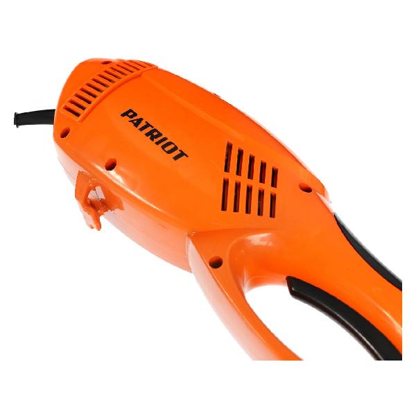 Электрический триммер Patriot ET 1200 оранжевого цвета оборудован поворотной режущей головкой с автоматической подачей лески диаметром 2 мм. Инструмент предназначен для скашивания травы на территории до 100 м² в рамках бытовых нужд. Вверху устройства расположен двигатель мощностью 1,1 кВт, который вращается со скоростью 7500 об/мин. Для удобства эксплуатации предусмотрена антивибрационная система.