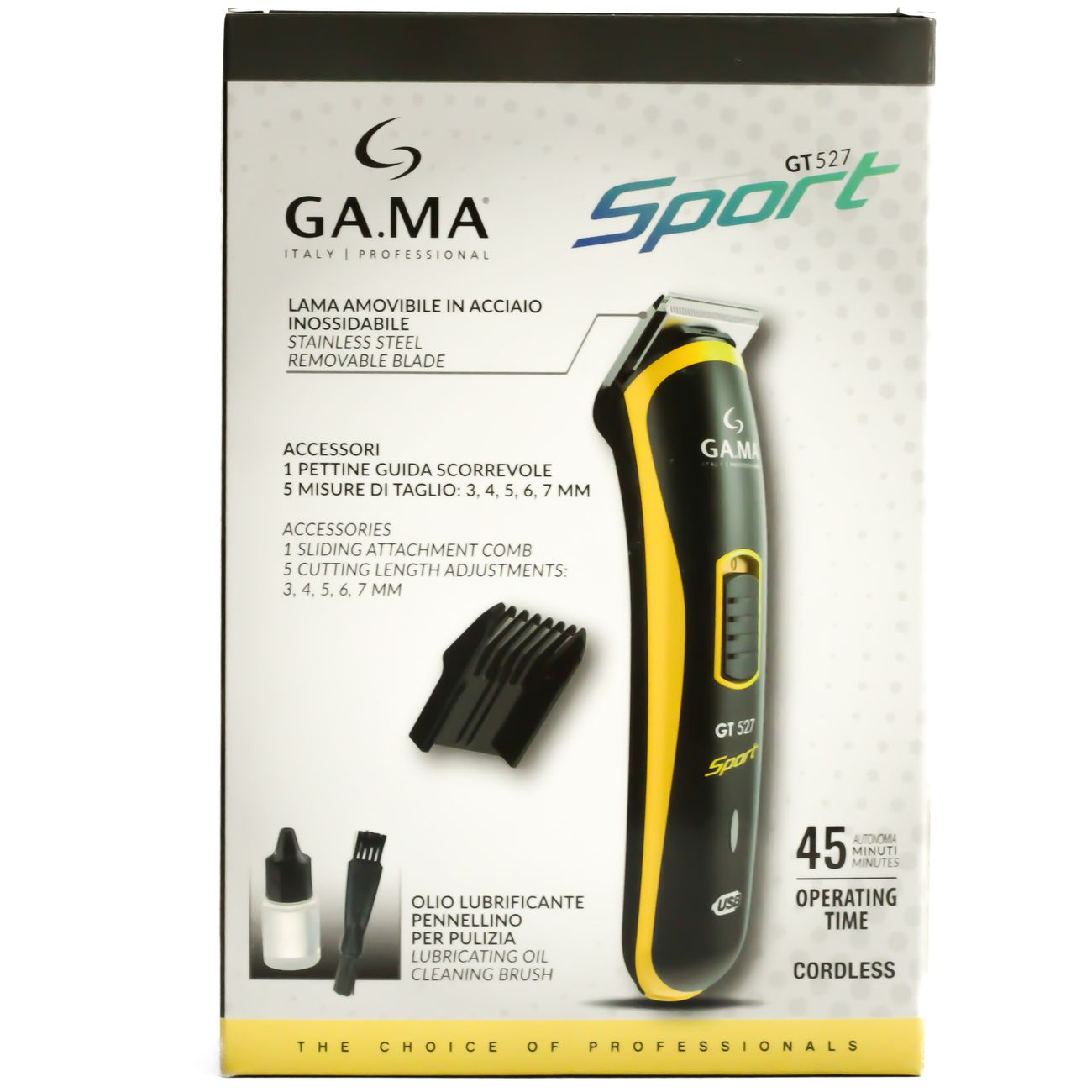 Триммер Ga.Ma GT527 Sport-HF с выдвижным направляющим гребнем позволяет создавать стильные стрижки длиной от 0,4 до 7 мм. Модель подходит для ухода за бородой, бакенбардами, усами.
