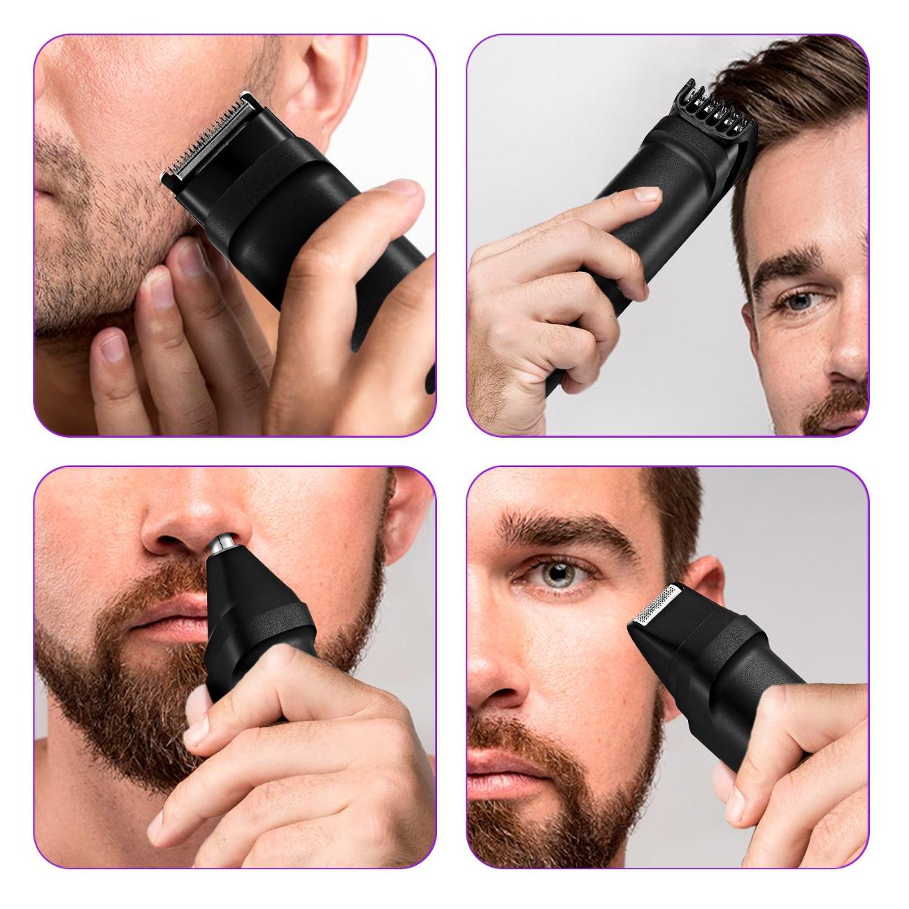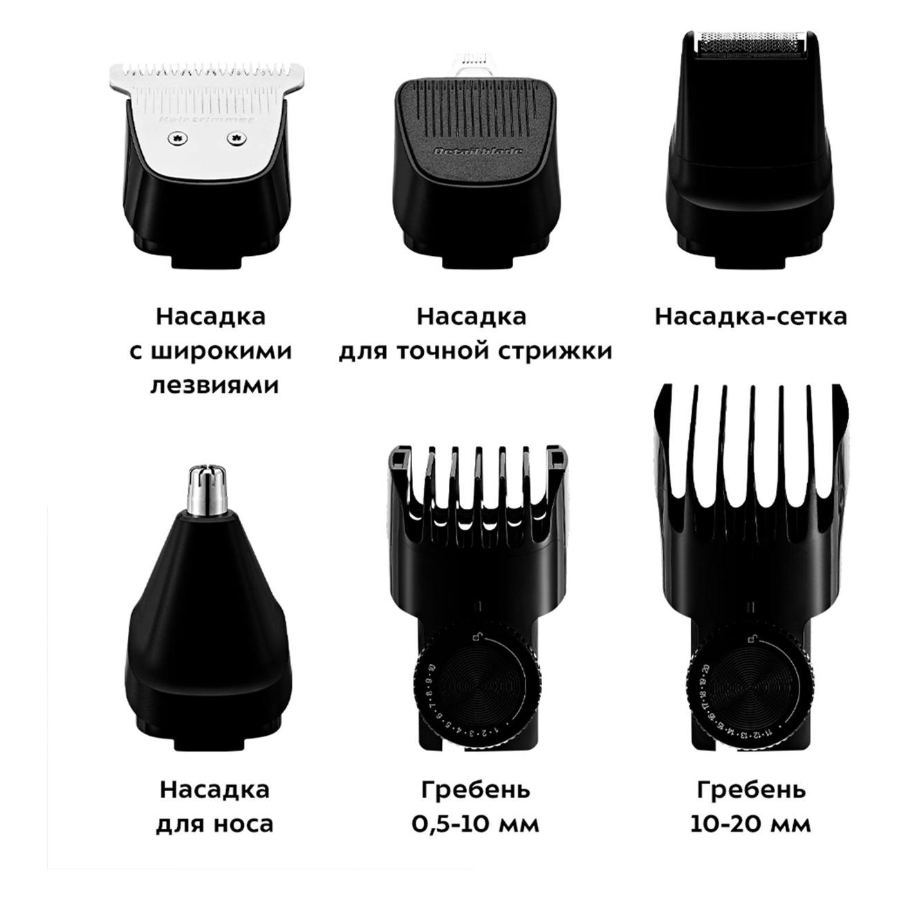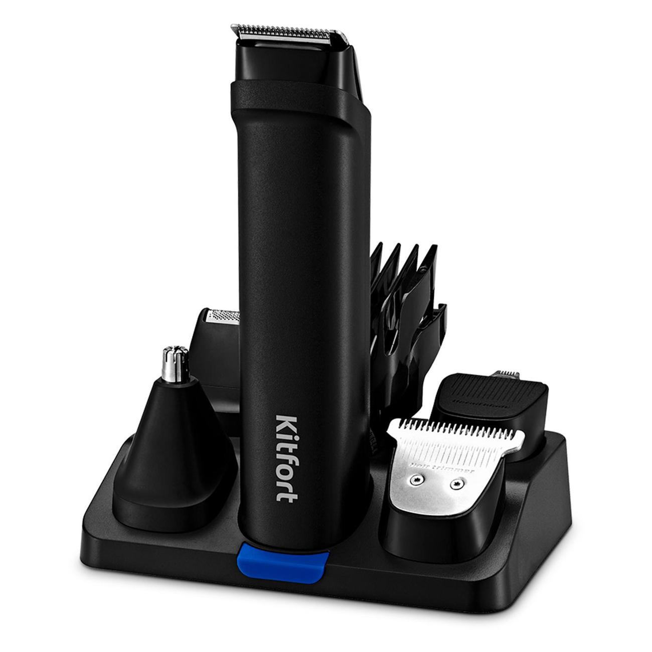 Триммер Kitfort КТ-3140-3 — многофункциональное устройство, которое включается и выключается нажатием на одну кнопку. В комплектацию входит шесть насадок — с лезвием из нержавеющей стали шириной 40 мм, для носа и ушей, для точной стрижки и два гребня с возможностью регулировки длины среза от 0,5 до 10 мм и от 10 до 20 мм. Наличие базы-подставки делает хранение аксессуаров удобным. Прибор поставляется с расческой, маслом для смазки и щеточкой для чистки.