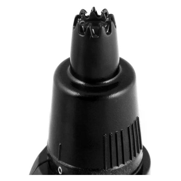 Триммер Panasonic ER407K520 поставляется в наборе вместе со щеточкой для чистки. Корпус изготовлен из прочных материалов, устойчивых к негативным внешним воздействиям. Устройство отличается компактными габаритами (5х18х5 см), весит всего 59 г, поэтому не займет много места при хранении и транспортировке. Модель предназначена для удаления волос с тела, ушей, стрижки бровей и работает от двух батареек типа АА непрерывно до 1,5 часов. Изделие включается механическим слайдером. Специальное покрытие предотвращает проскальзывание в руках при работе.