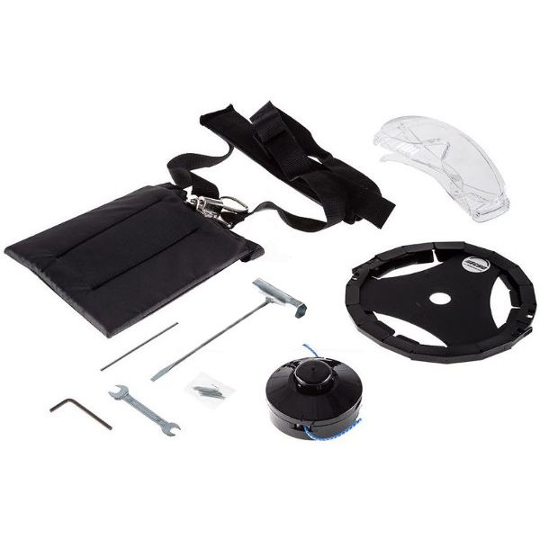 В качестве режущих элементов в этой модели используются нож и леска. Они закрыты специальным кожухом, который предотвращает раскидывание срезанной травы.