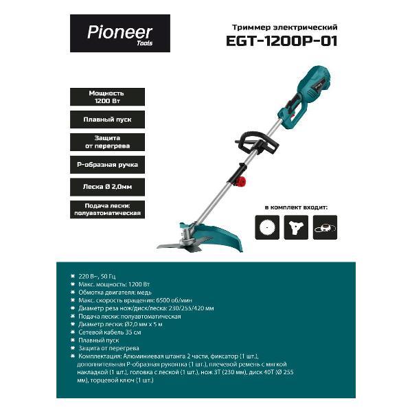 Вы можете купить Триммер садовый Pioneer EGT-1200P-01 в магазинах М.Видео по доступной цене. Триммер садовый Pioneer EGT-1200P-01: подробное описание, фото и отзывы реальных покупателей, характеристики, возможность скачать инструкции и подобрать аксессуары.