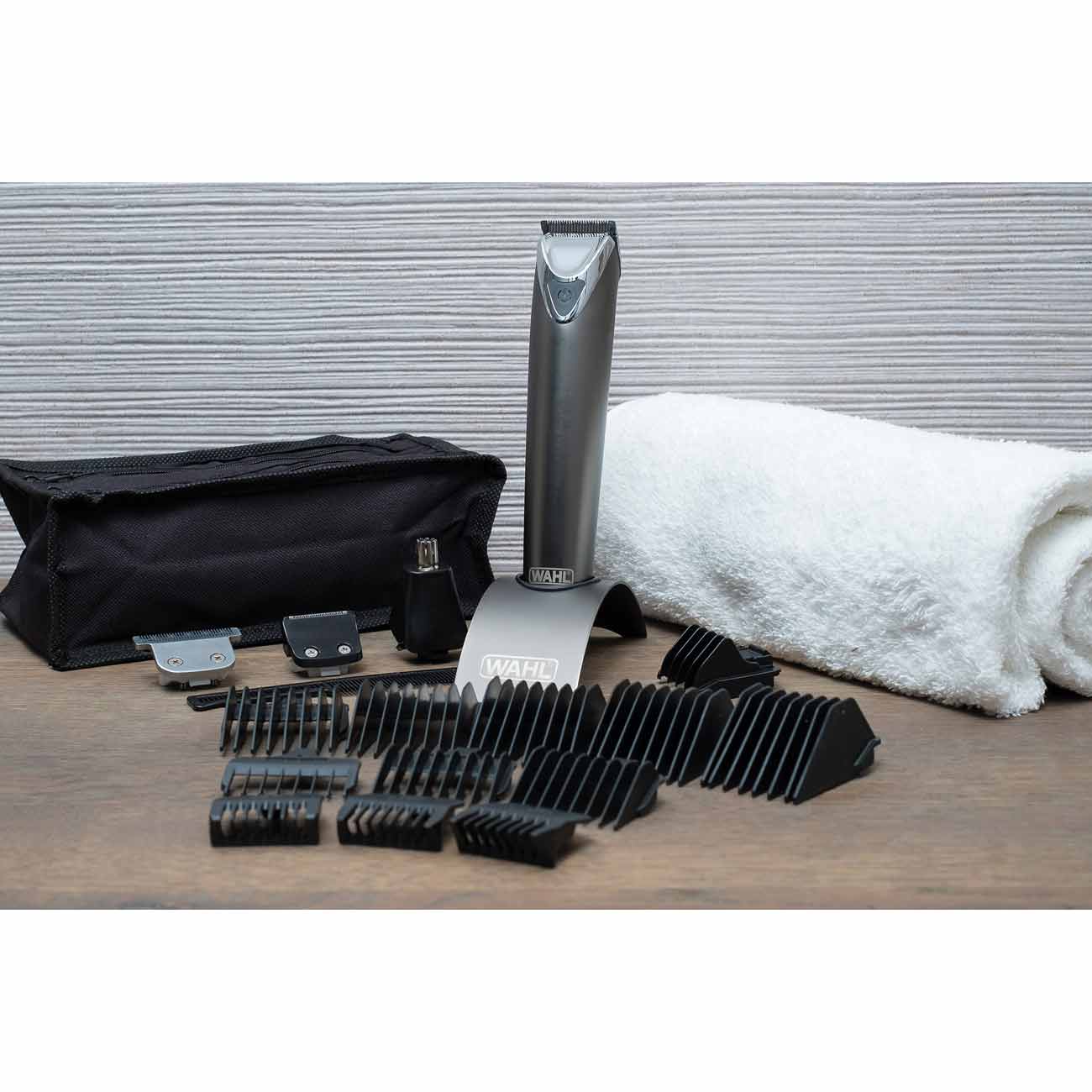 Первое впечатление: невероятное количество насадок (11-12), сумка для перевозки комплекта, подставка, да и сам триммер - очень хороши. Машинка сделана аккуратно, металлический брутальный корпус, индикатор заряда, который горит синим во время бритья и в руке триммер сидит удобно, как влитой. Насадок очень много, нигде такого большого количества не видел. Бритье комфортное, правда показалось что насадка для чистого бритья совсем не справлялась со своей функцией. На подставку триммер не ставил, все убираю в сумку, которая идет в комплекте (в нее все у меня поместилось).