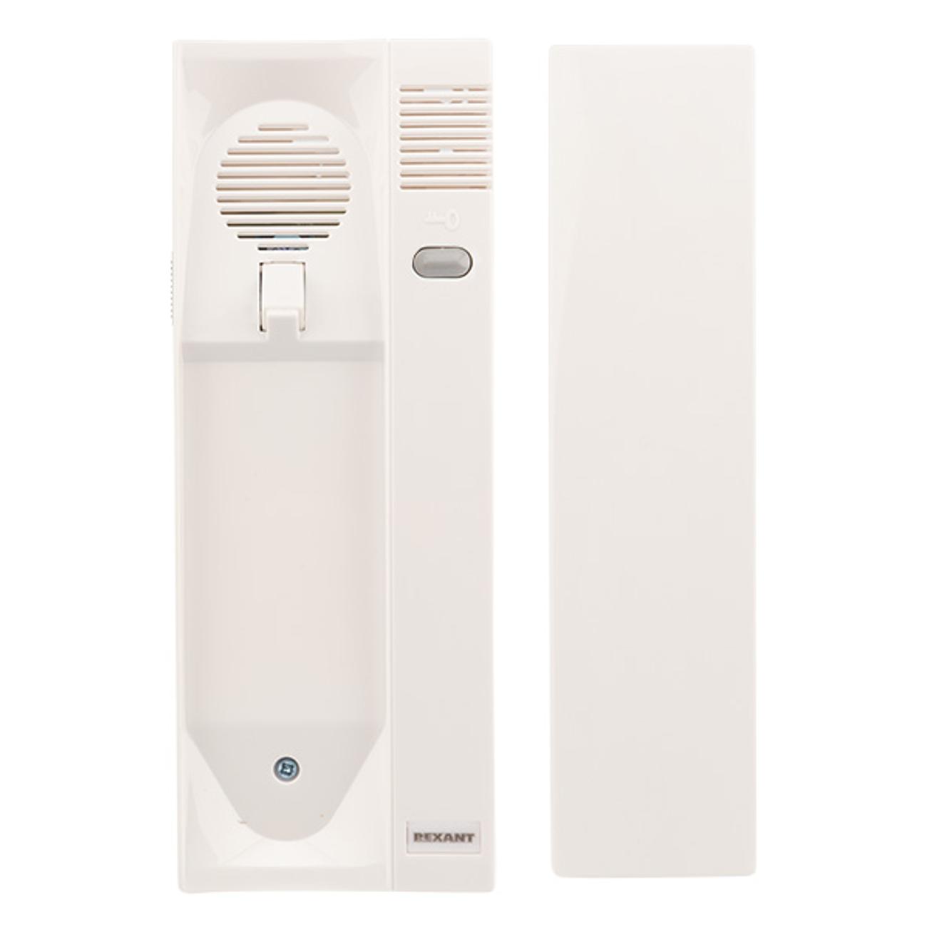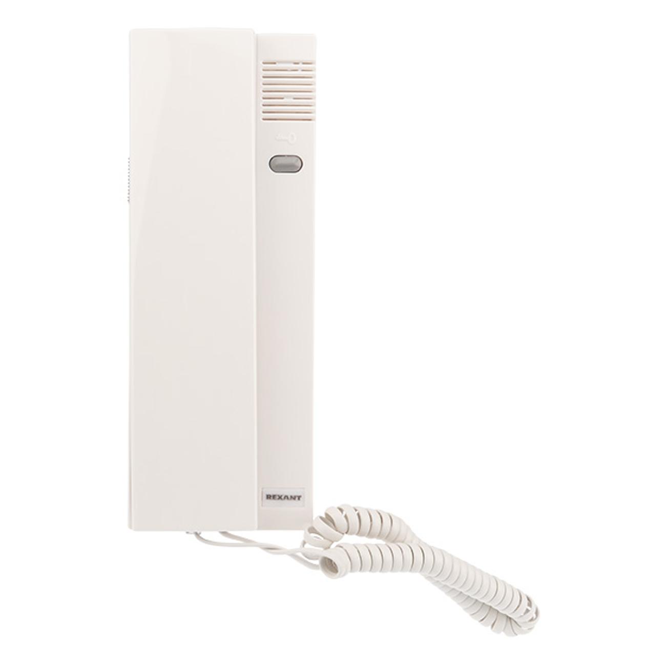 Трубка домофона Rexant RX-349 крепится к стене. Модель оснащена возможностью отключения звука. При поступлении вызова загорается индикатор. Для открытия двери есть кнопка. В набор входит комплект для монтажа. Вид системы подключения — двухпроводная.