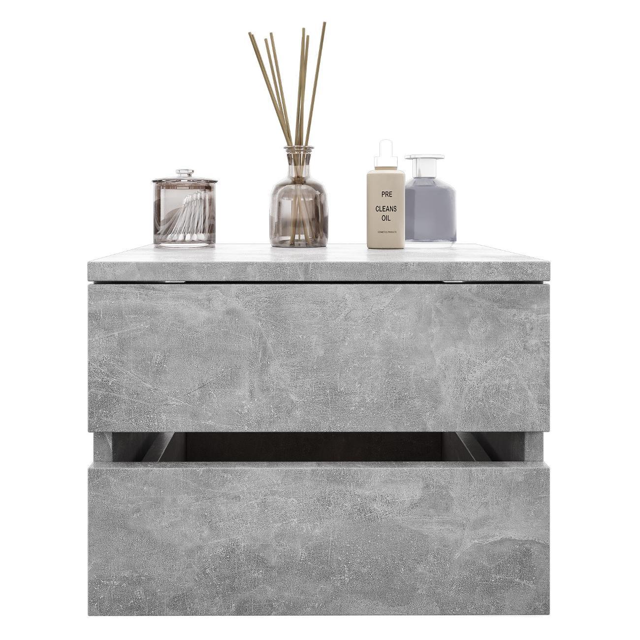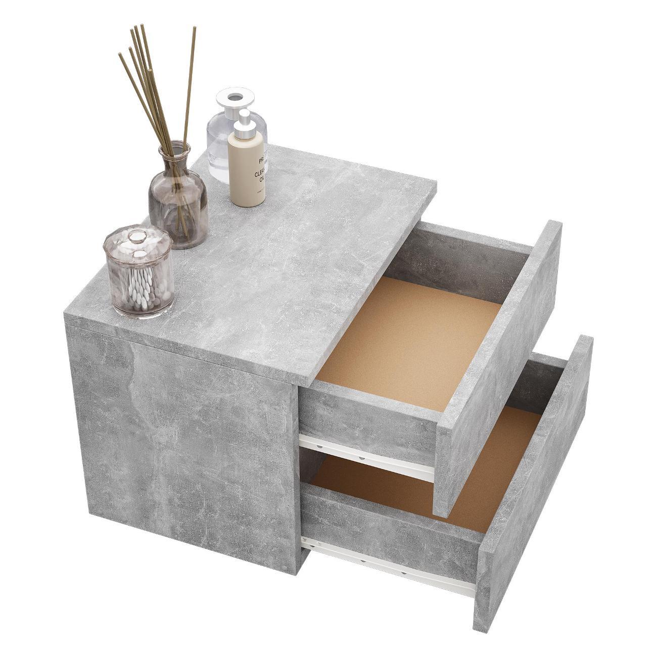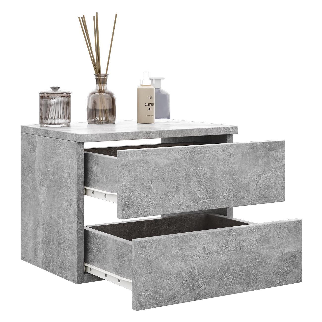 Компактные размеры (высота 28,7 см, глубина 27,2 см, ширина 37,4 см) позволяют удобно разместить изделие в различных помещениях. Два выдвижных ящика на роликовых направляющих открываются без ручки через вырез в фасаде, что обеспечивает современный и минималистичный вид.