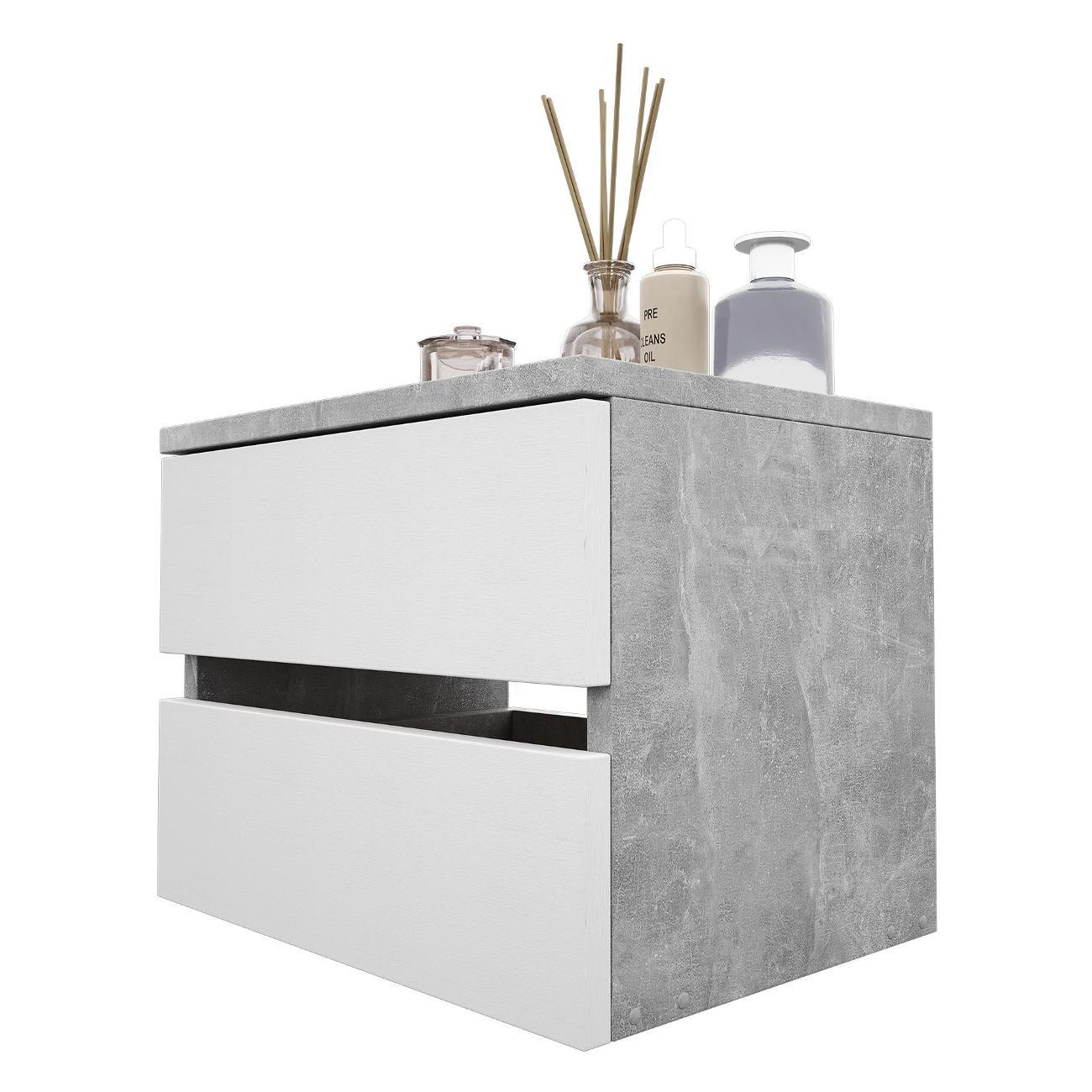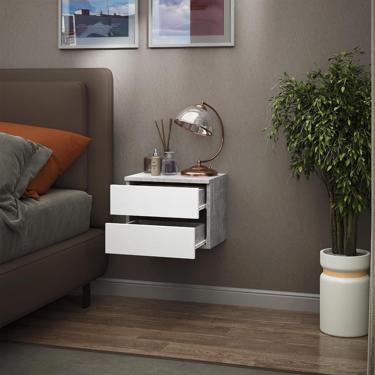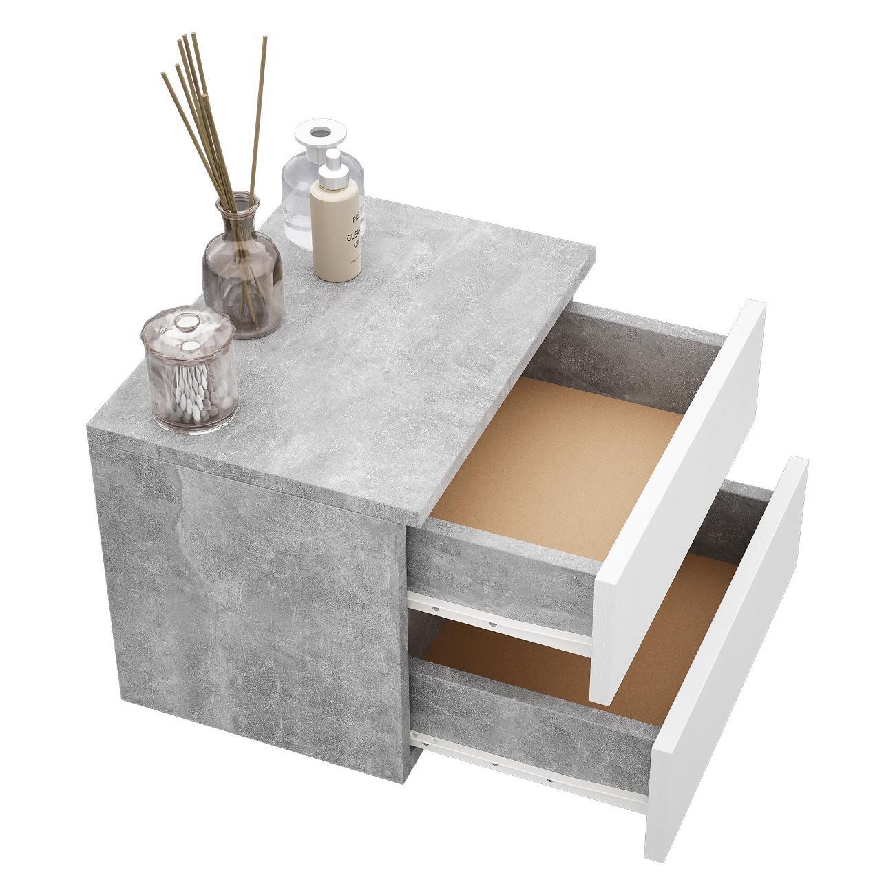 Компактные размеры (высота 28,7 см, глубина 27,2 см, ширина 37,4 см) позволяют удобно разместить изделие в различных помещениях. Два выдвижных ящика на роликовых направляющих открываются без ручки через вырез в фасаде, что обеспечивает современный и минималистичный вид.