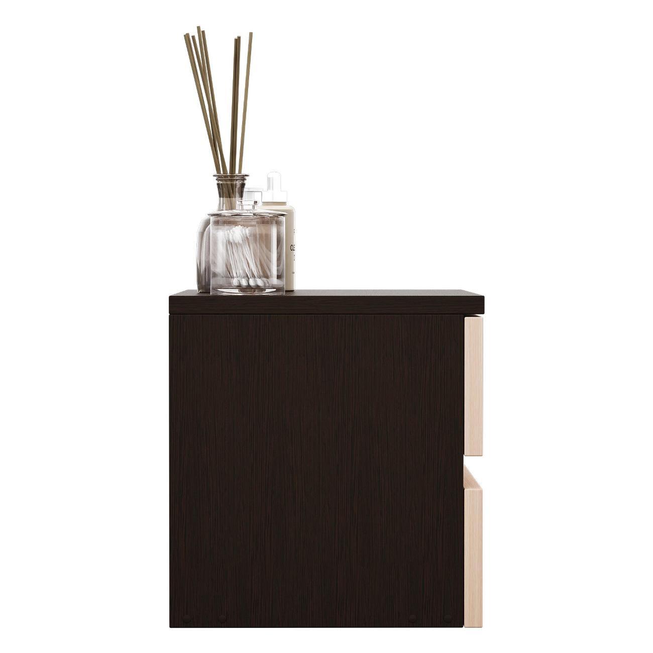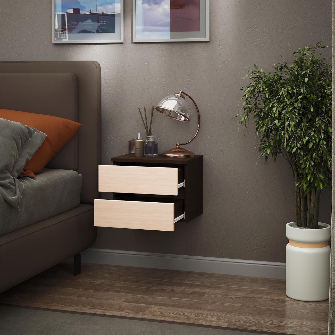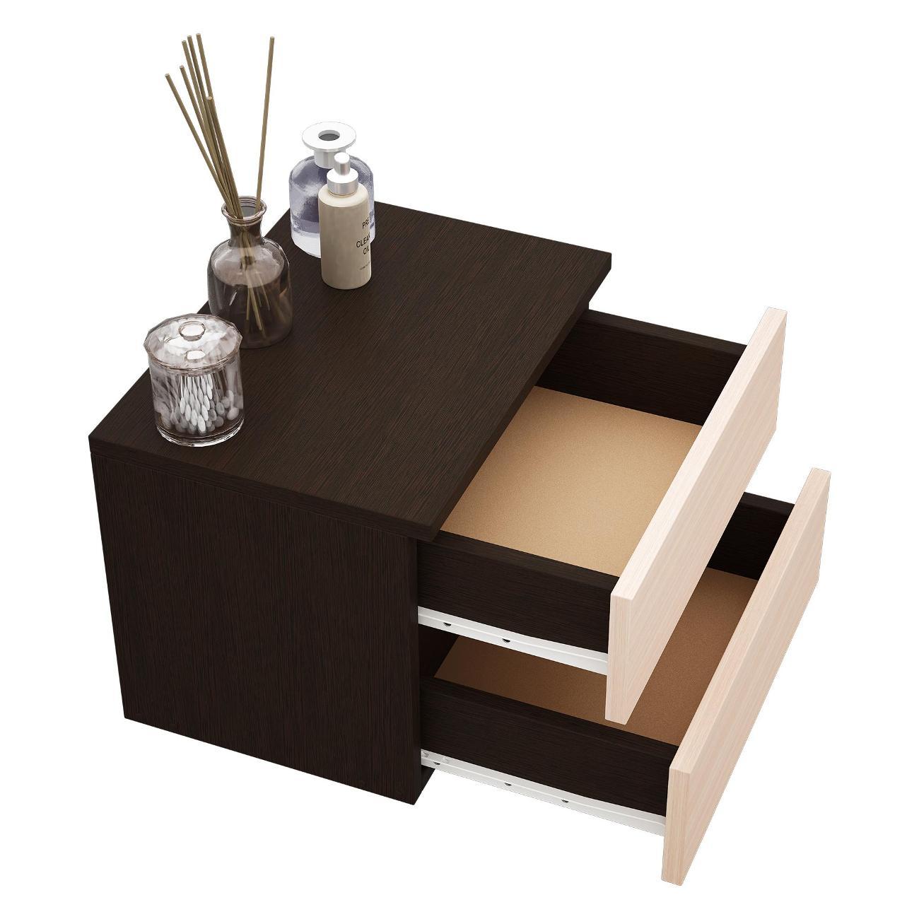 Компактные размеры (высота 28,7 см, глубина 27,2 см, ширина 37,4 см) позволяют удобно разместить изделие в различных помещениях. Два выдвижных ящика на роликовых направляющих открываются без ручки через вырез в фасаде, что обеспечивает современный и минималистичный вид.