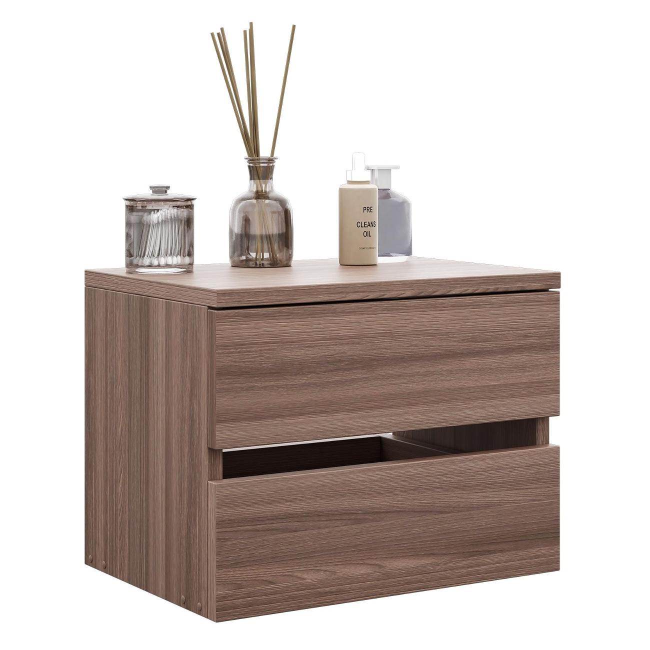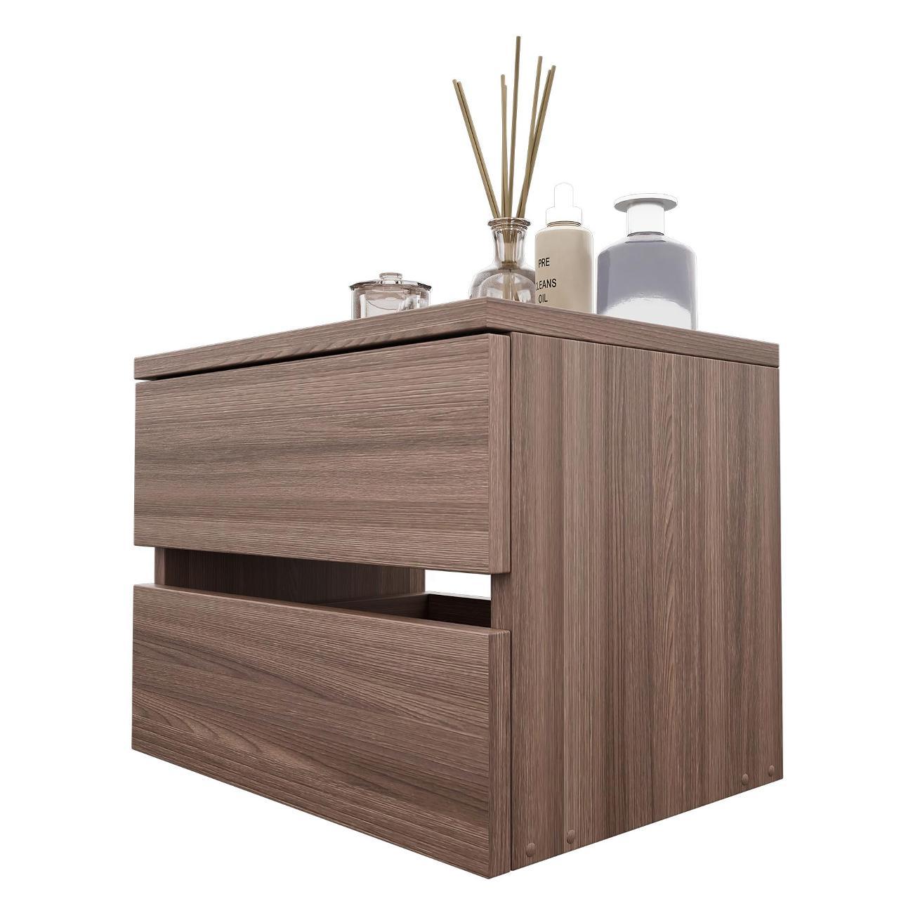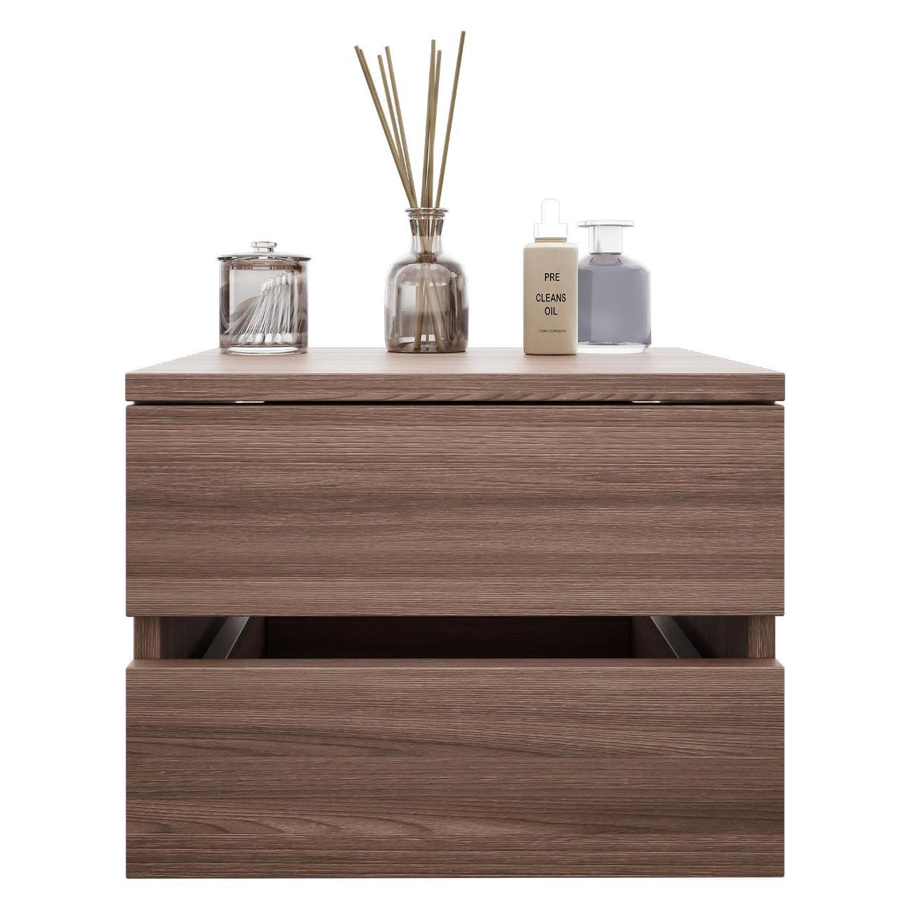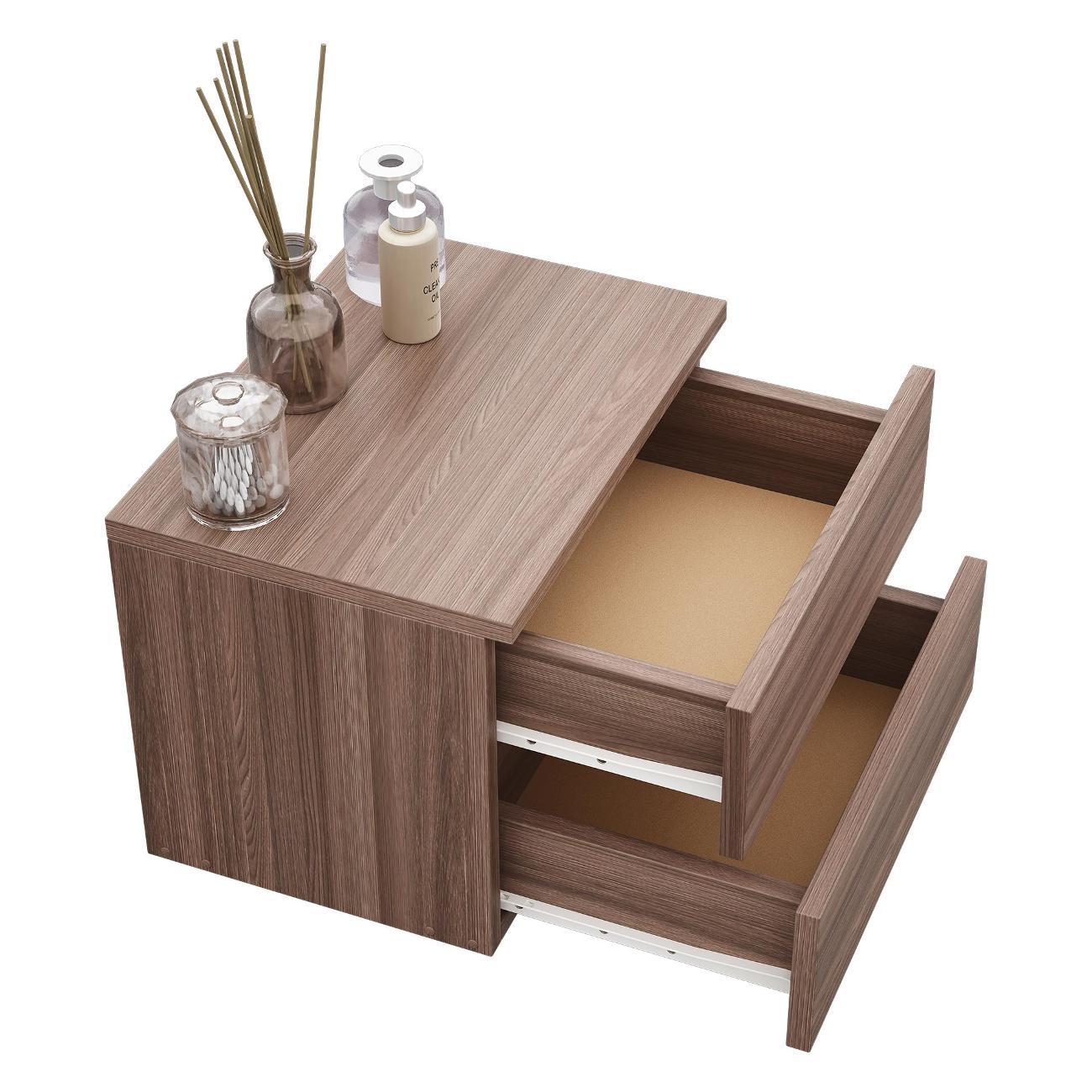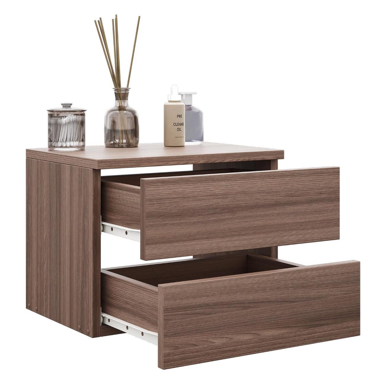 Компактные размеры (высота 28,7 см, глубина 27,2 см, ширина 37,4 см) позволяют удобно разместить изделие в различных помещениях. Два выдвижных ящика на роликовых направляющих открываются без ручки через вырез в фасаде, что обеспечивает современный и минималистичный вид.