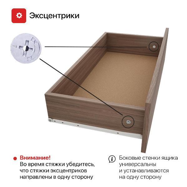 Упаковка обеспечивает сохранность изделия при доставке. Произведено в России. Важно отметить, что боковые стенки ящиков универсальны, а технологические отверстия закрываются заглушками в тон изделия. Рекомендуется внимательно ознакомиться с инструкцией перед сборкой для достижения наилучшего результата.
