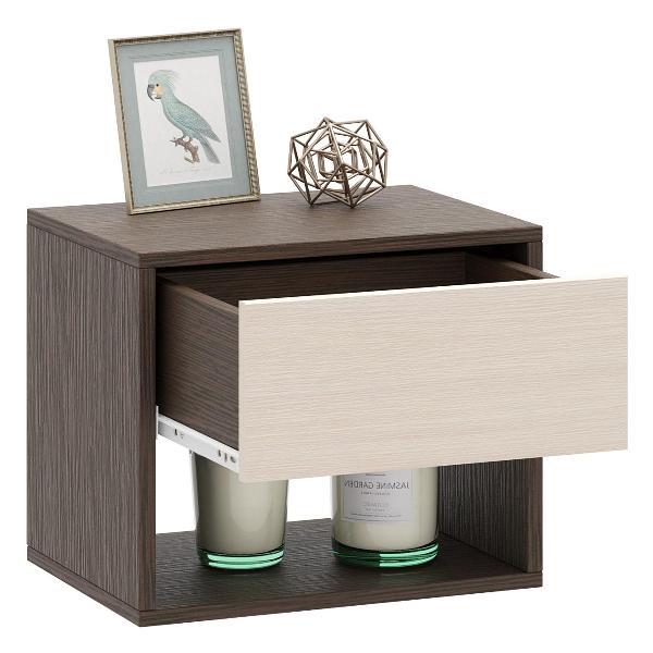 Изготовлено из прочного ЛДСП, изделие отличается компактными размерами: высота 37,2 см, ширина 40,2 см и глубина 29,4 см. Закрытый выдвижной ящик на роликовых направляющих обеспечивает легкий доступ к содержимому, а открытая ниша может использоваться для размещения книг или декоративных предметов. Фасад без ручек открывается за край, что придает модели современный вид.