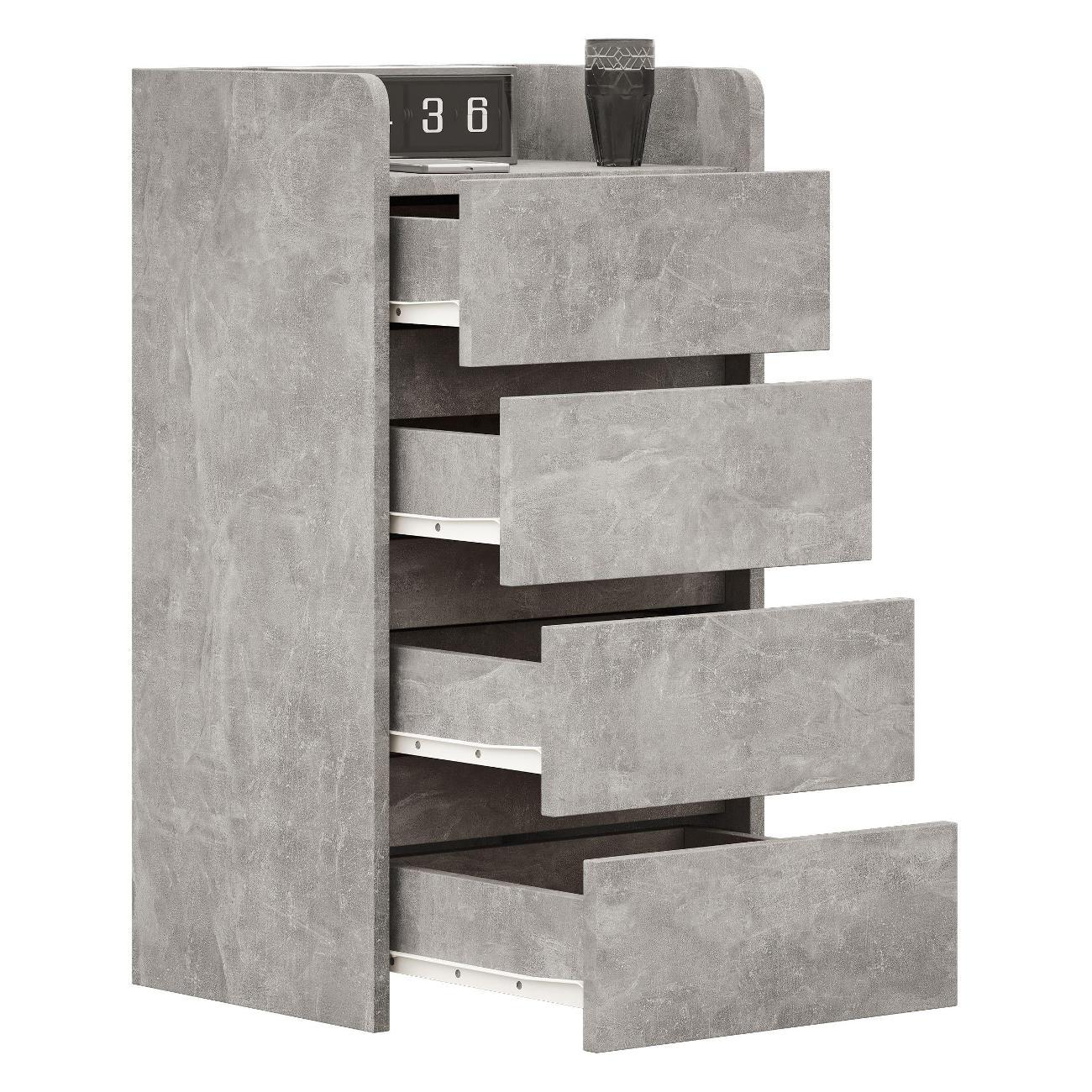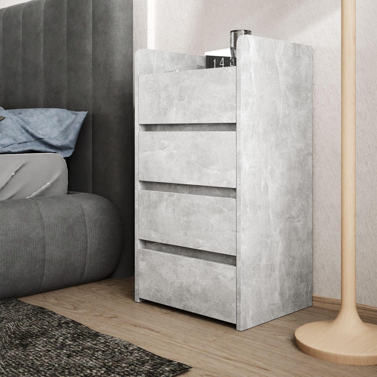 Четыре ящика обеспечивают достаточное пространство для хранения личных вещей, зарядных устройств и книг, что делает тумбу отличным вариантом для ванной комнаты. Стильный дизайн дополнит интерьер офиса, прихожей, кухни и кабинета. Отсутствие лицевой фурнитуры подчеркивает индивидуальность интерьера, что особенно актуально для детской комнаты.