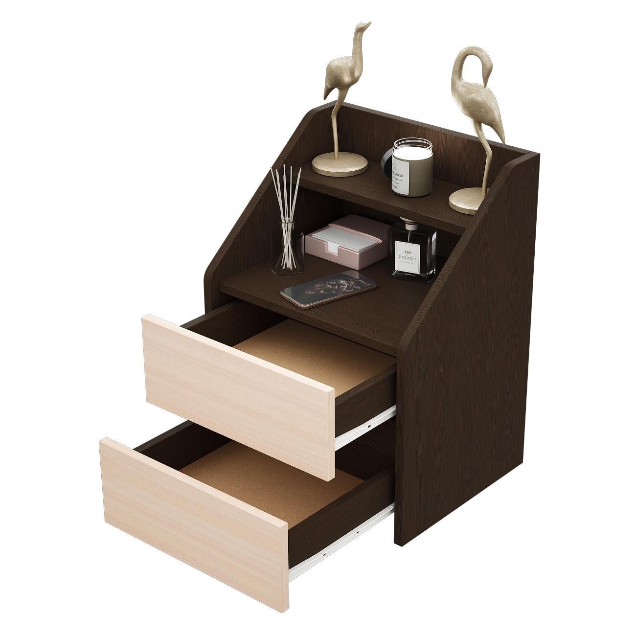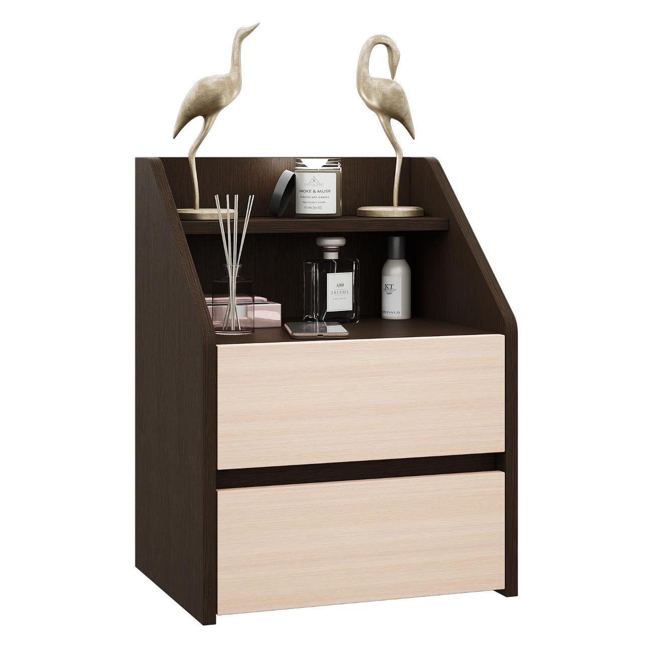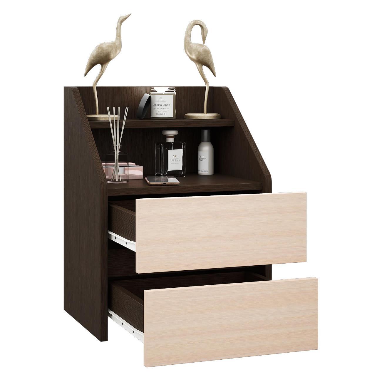 Функциональность: Оснащена двумя вместительными ящиками на роликовых направляющих, которые открываются плавно и бесшумно. Открытая ниша и полка подходят для размещения книг, аксессуаров или декоративных элементов.